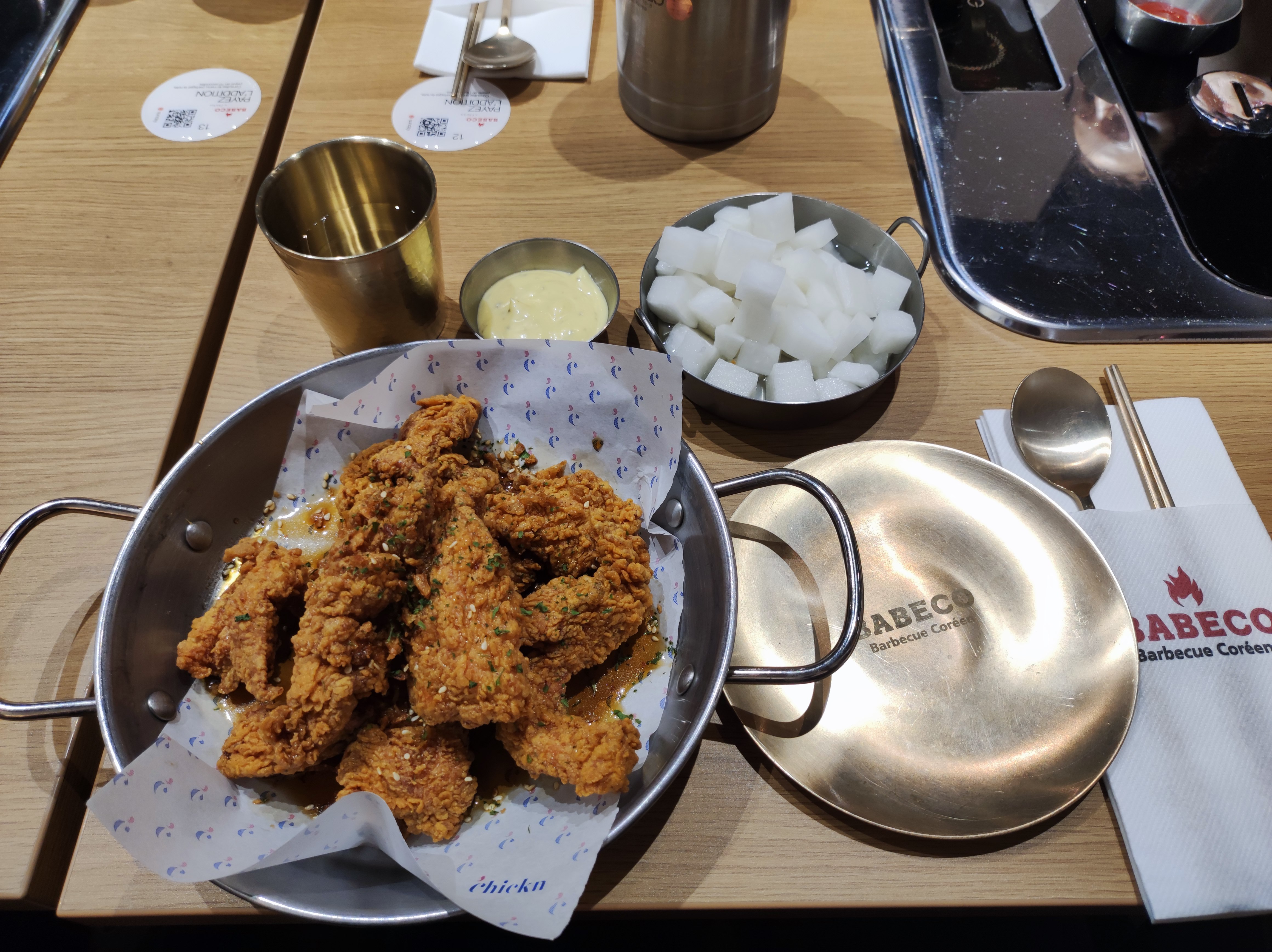 J'ai mangé 2 fois à Babeco, et les 2 fois, c'était délicieux ! La première fois, on me l'a fait découvrir, la deuxième, je l'ai fait découvrir à une amie. Ça faisait un moment qu'on cherchait un très bon restaurant coréen qui ne soit pas sur Paris. Ce restaurant respecte la culture coréenne ! Le poulet ne fait pas que ressembler à du poulet coréen que vous pouvez manger le long de la Han. Il en a le goût ! Il est même servi avec des radis, comme en Corée. Le BBQ était délicieux également. J'ai trouvé que les quantités étaient plus conséquentes la deuxième fois, que la première d'ailleurs ! PS : Thumbs up à Chloé qui nous a servi la première fois, et qui a été très patiente parce que mes amies ne connaissaient pas ahah! Elle a géré 👍🏻