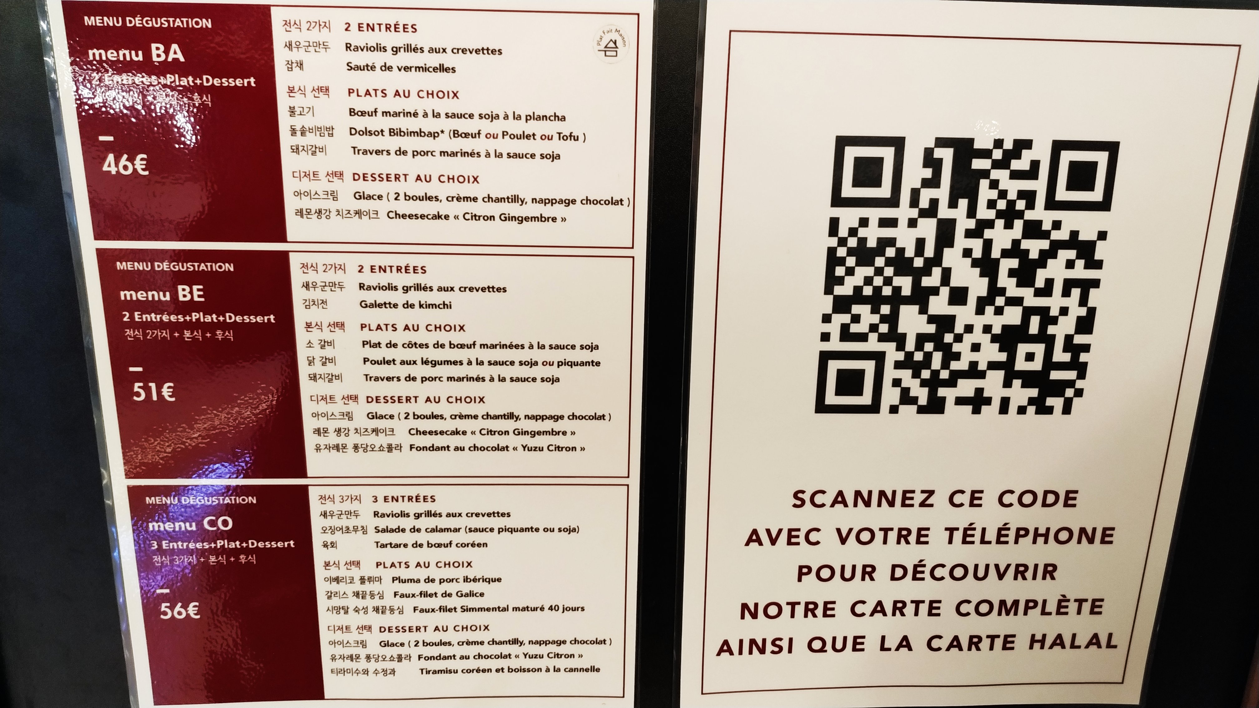 Bonjour, Pour ma part j’ai trouvé le cadre assez jolie, le personnel était très présent et aimable. Ensuite concernant le poulet frit et la grillade poulet c’était très bon! En ce qui concerne la viande de bœuf en bbq , elle était un peu trop élastique et pas assez assaisonné. Maintenant de façon plus général j’ai trouvé l’ensemble assez chère. Les entrées à la carte à 15 et 20 euros. Je n’ai pas trouvé ça normal que le riz ne soit pas compris dans le barbecue (contrairement aux autres barbecue coréen que l’on peut trouver en région parisienne). Sinon assez bonne expérience mais que je ne reviendrais pas car on trouve des coréens avec beaucoup plus de choix et à des prix plus raisonnables sur Paris. Mais pour ceux qui souhaite une carte 100% halal c’est une bonne expérience et certification présente!