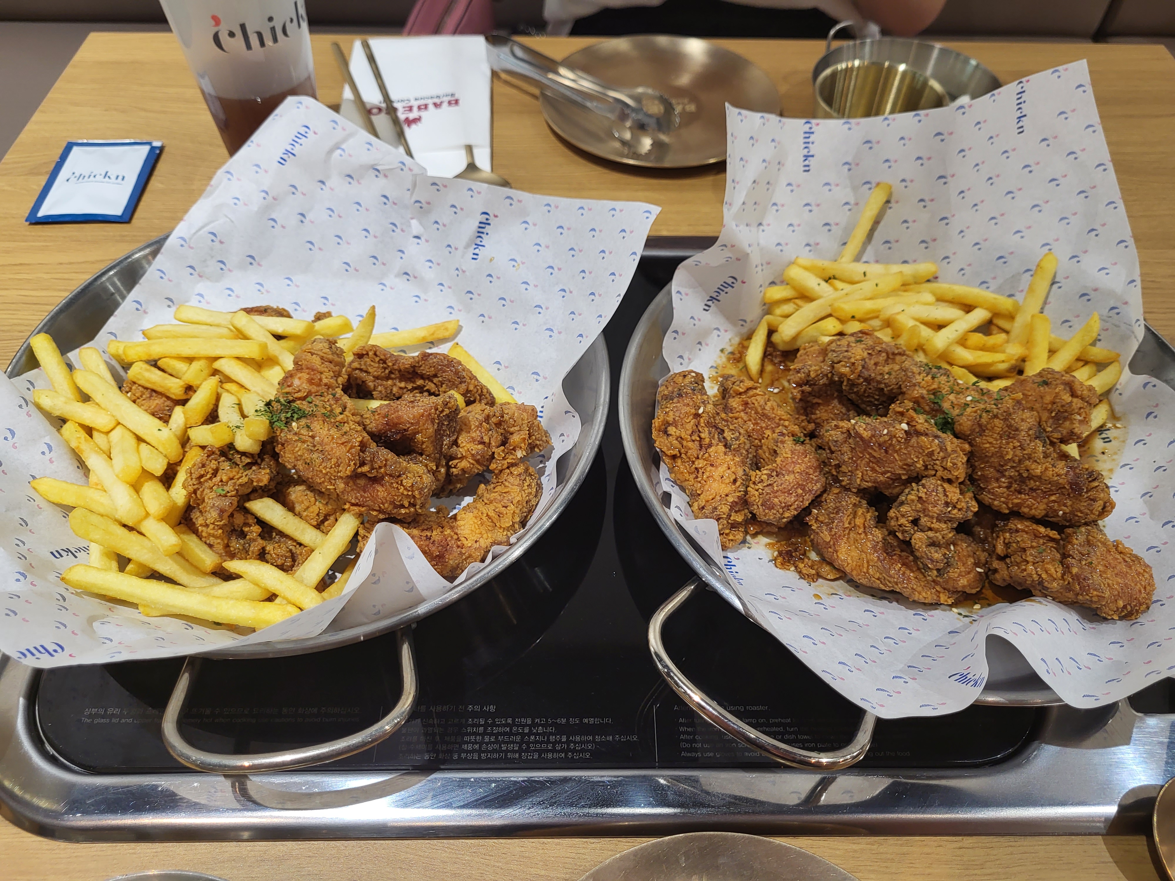 Nous avons testé le poulet à volonté .... Et bien pour un volonté il faut relancer à chaque fois, on n'a pas pu faire de commande après que notre commande soit arriver donc 1h30 pour manger mais déjà 20min pour avoir la commande sans pouvoir recommander tout de suite c'est moyen, et le comble on nous annonce qu'il y aura de l attente pour la commande effectuée..... Ils oublient aussi de nous ramener la majorité de nos commandes. Y a bien meilleur comme poulet frit coréen. Dommage, ce qu'on voit sur insta est surcoter par rapport à ce que l'on commande et ce que l'on mange. En 1h30 nous avons effectué que 3 commandes. Je ne recommande pas ce restaurant.
