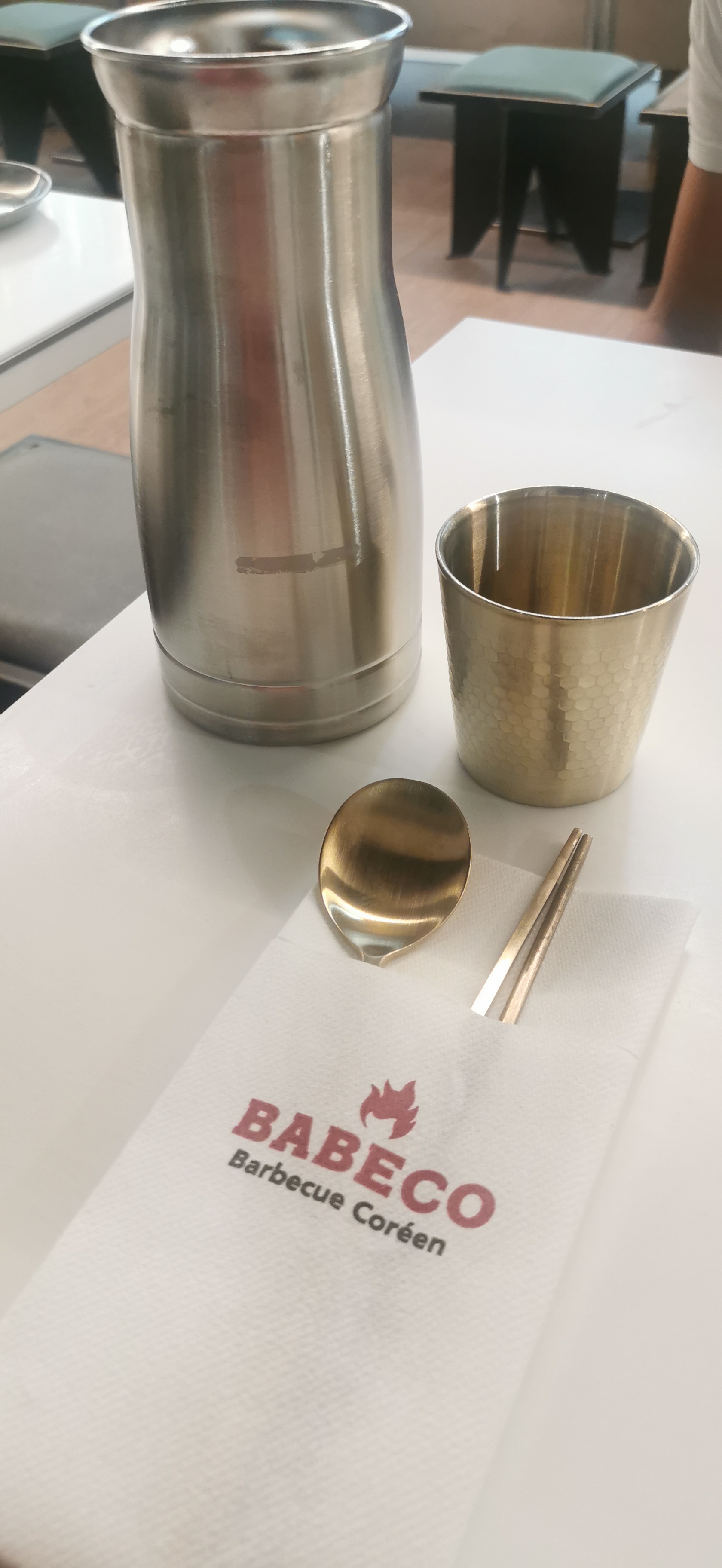 Globalement la nourriture est vraiment très bonne mais le prix est clairement à revoir. Même dans un restaurant coréen parisien le prix reste plus attractif Surtout au niveau de l’accompagnement : pourquoi faire payer l’accompagnement là ou chez la concurrence cela est déjà inclus ? Faire payer un bol de riz nature à 3€50 pour une portion relativement faible reste un gros inconvénient Avec ma campagne en plus du barbecue, nous avons dû payer 3 bols de riz pour la modique somme de 10€50.. Au total, nous avons payé plus de 85€ pour 2 personnes (sans dessert ni boisson), ce qui est extrêmement élevé pour cette gamme de restaurant Gros point positif sur le service, nous avons été très bien accueilli