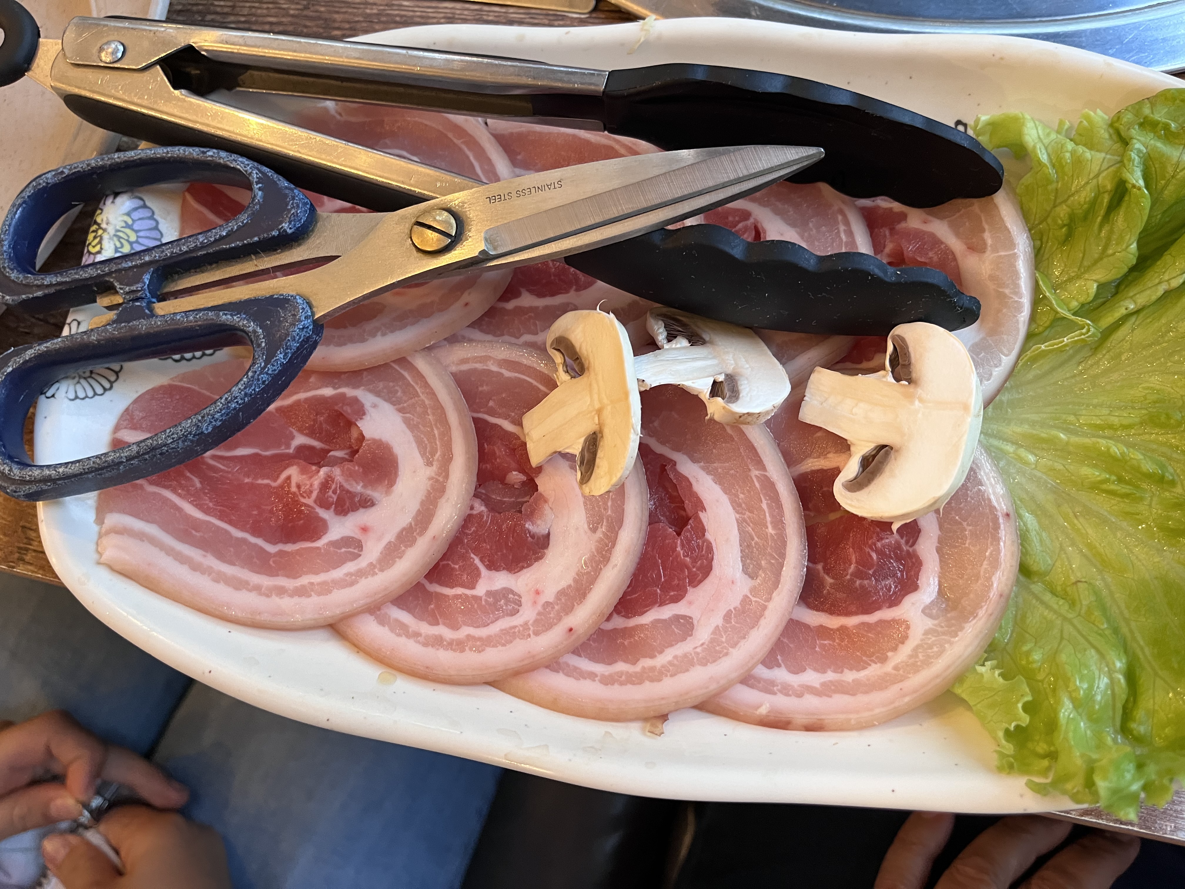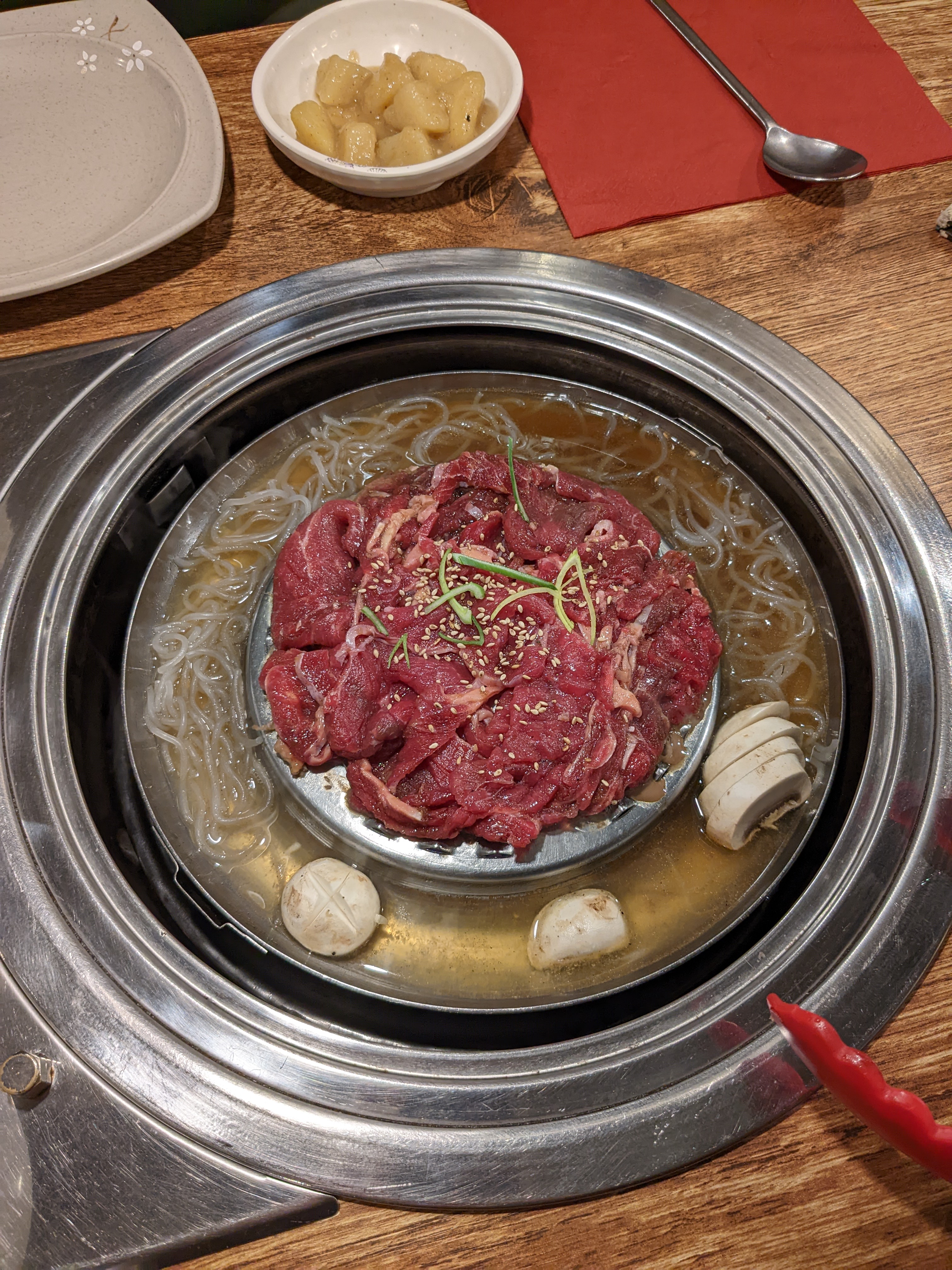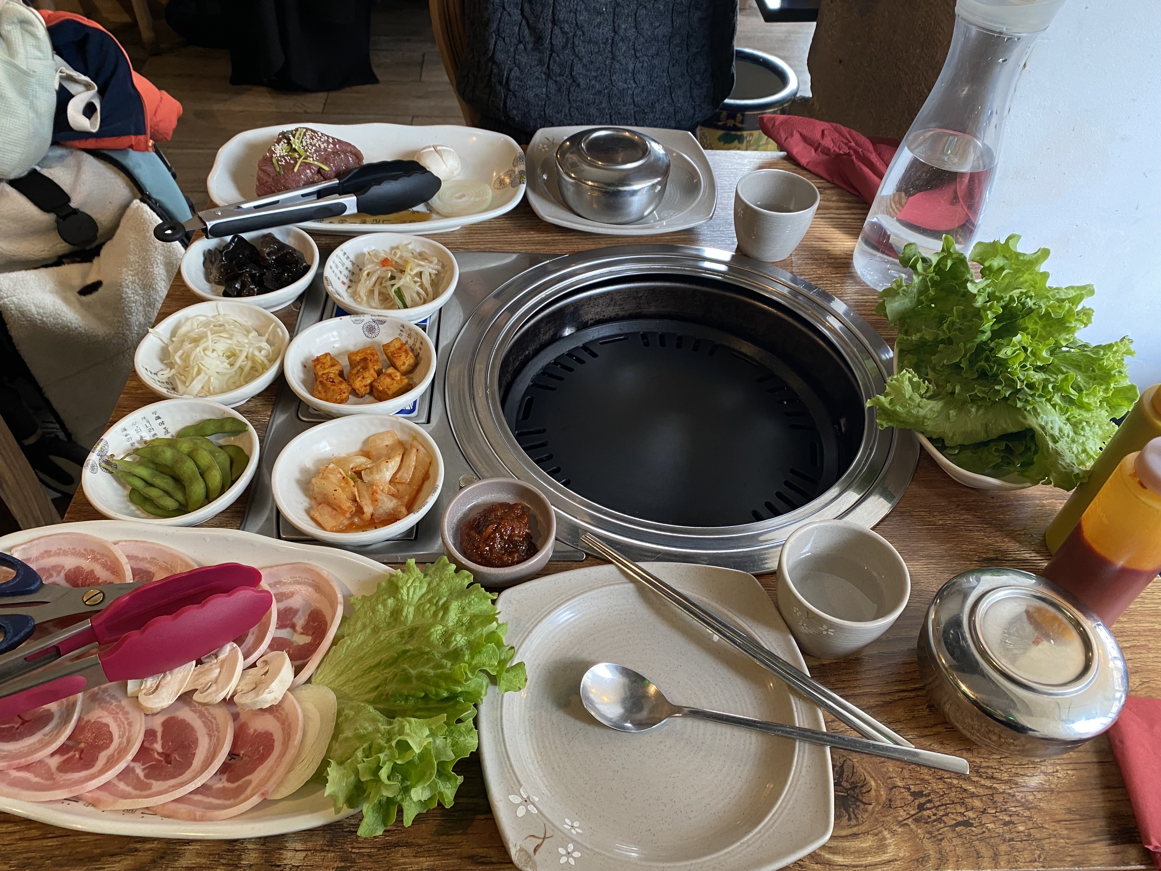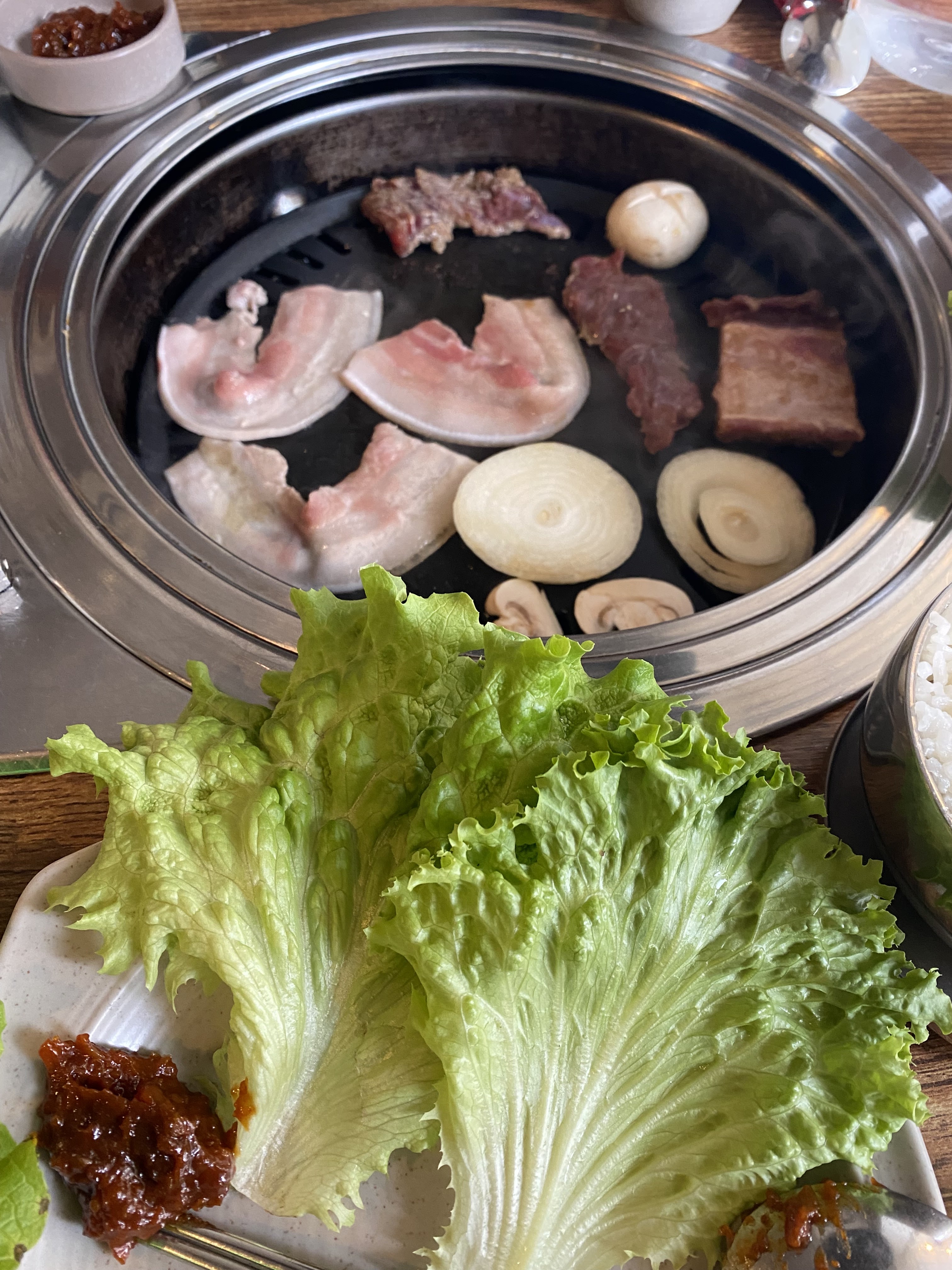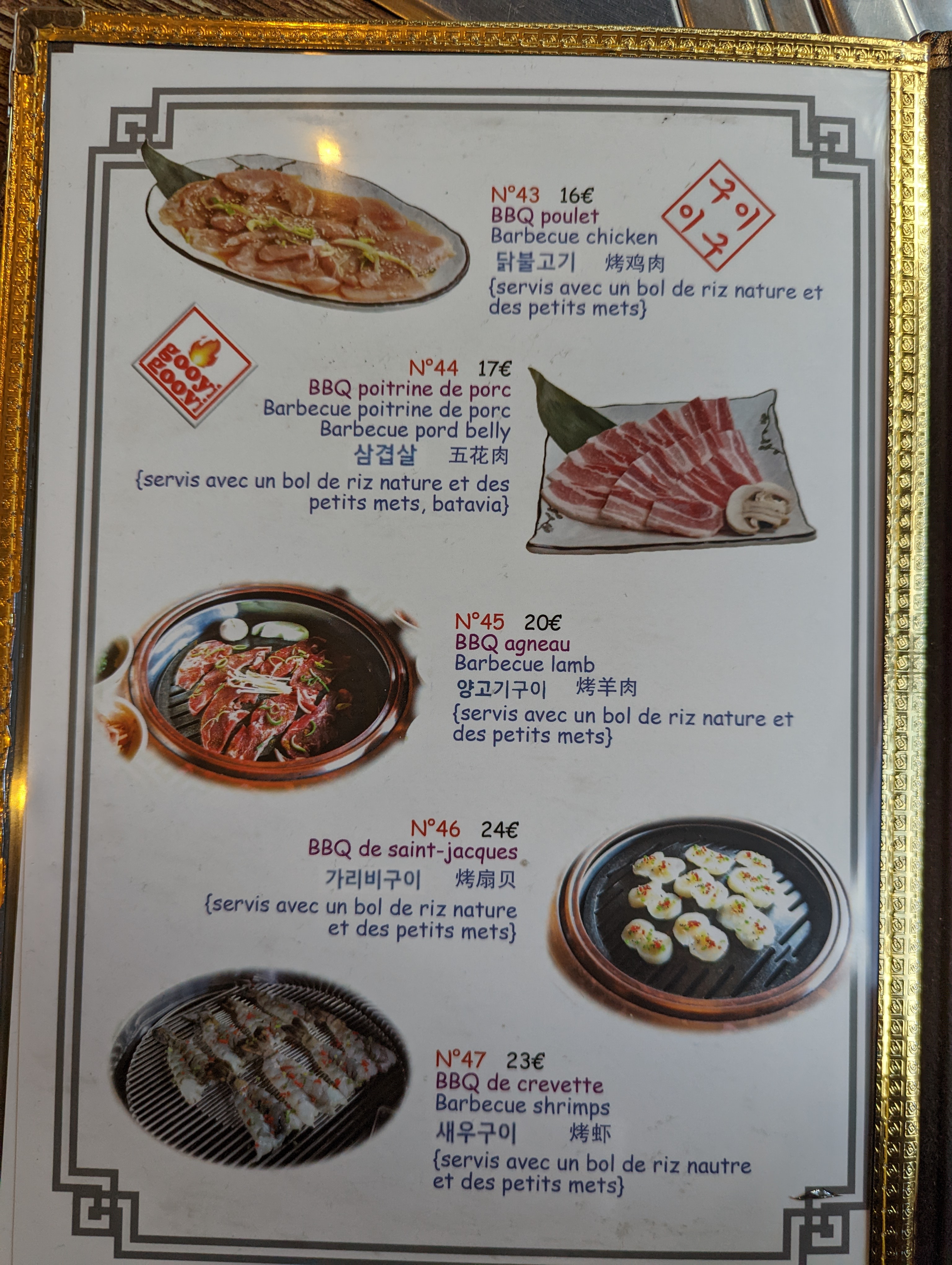 Pour ceux qui ont déjà mangé un barbecue Coréen en Corée…faut pas rêver: on est a des années lumières. Viande pas mal mais la qualité des accompagnements est vraiment, mais alors vraiment pas à la hauteur. Désolé…