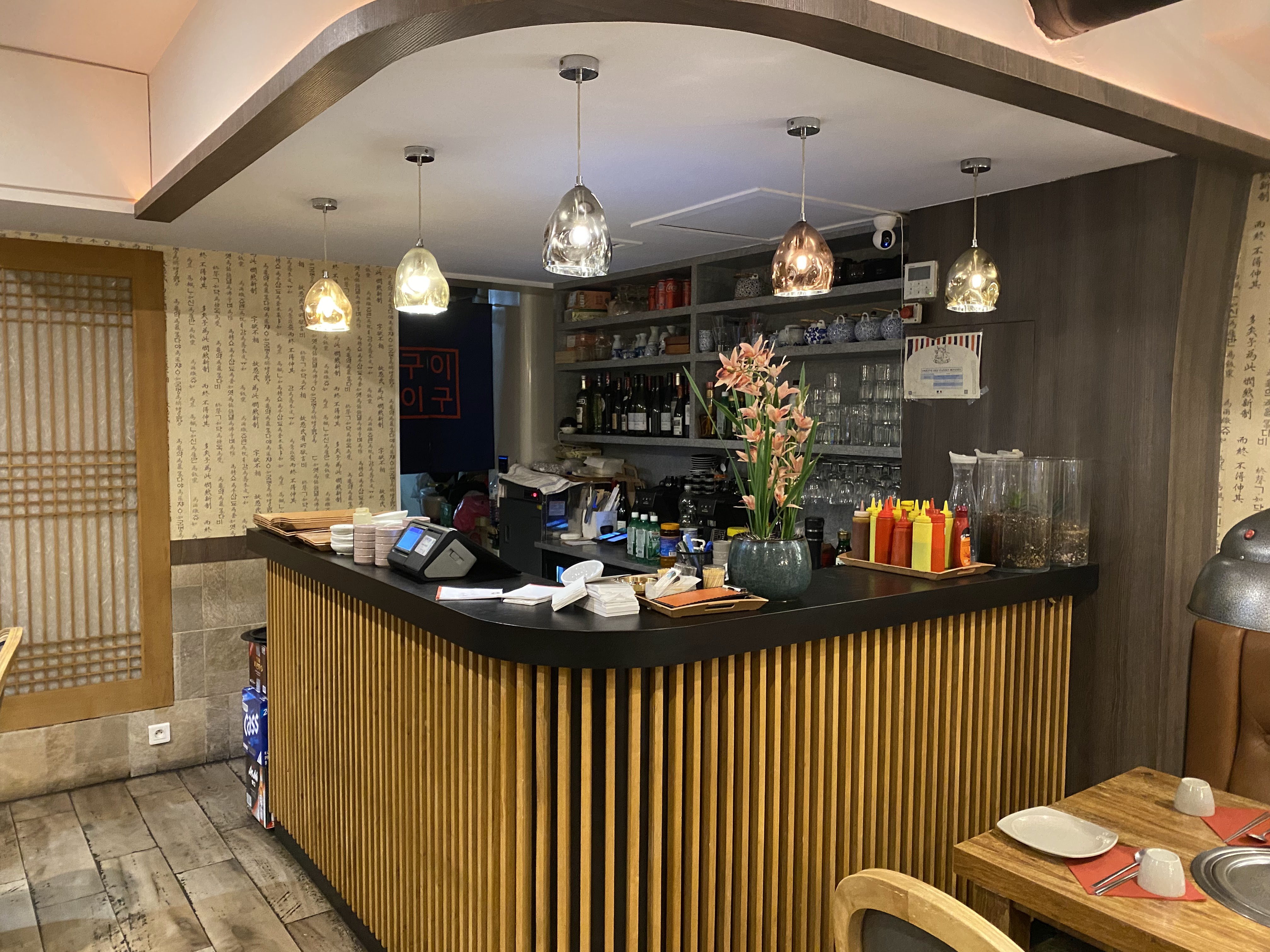 Nous étions 3 personnes, et nous avons été bien accueilli. Nous avions commandé 2 barbecue coreen, 1 pavée de saumon, et des beignets de poulets frit. L'hôte nous à demandé le niveau du piquant pour les beignets, entre pas piquant, moyennement piquant et très piquant. Nous avons commandé moyennement piquant et le degré de piquant été respecté. La portion du barbecue est plus que raisonnable, la viande est mariné et des crudités fournis avec. Le poulet est halal pour les musulmans mais gros bémol pour le barbecue, c'est qu'il n'y a pas de papier cuisson pour le mettre entre la viande et la plaque de cuisson, pour les raisons suivantes : 1. Le mélange de la viande halal et non halal est possible 2. La plaque à fini par être recouverte de sucs de viande brûlé. Ceci dit l'endroit est propre, les toilettes spacieuse et bien entretenu..