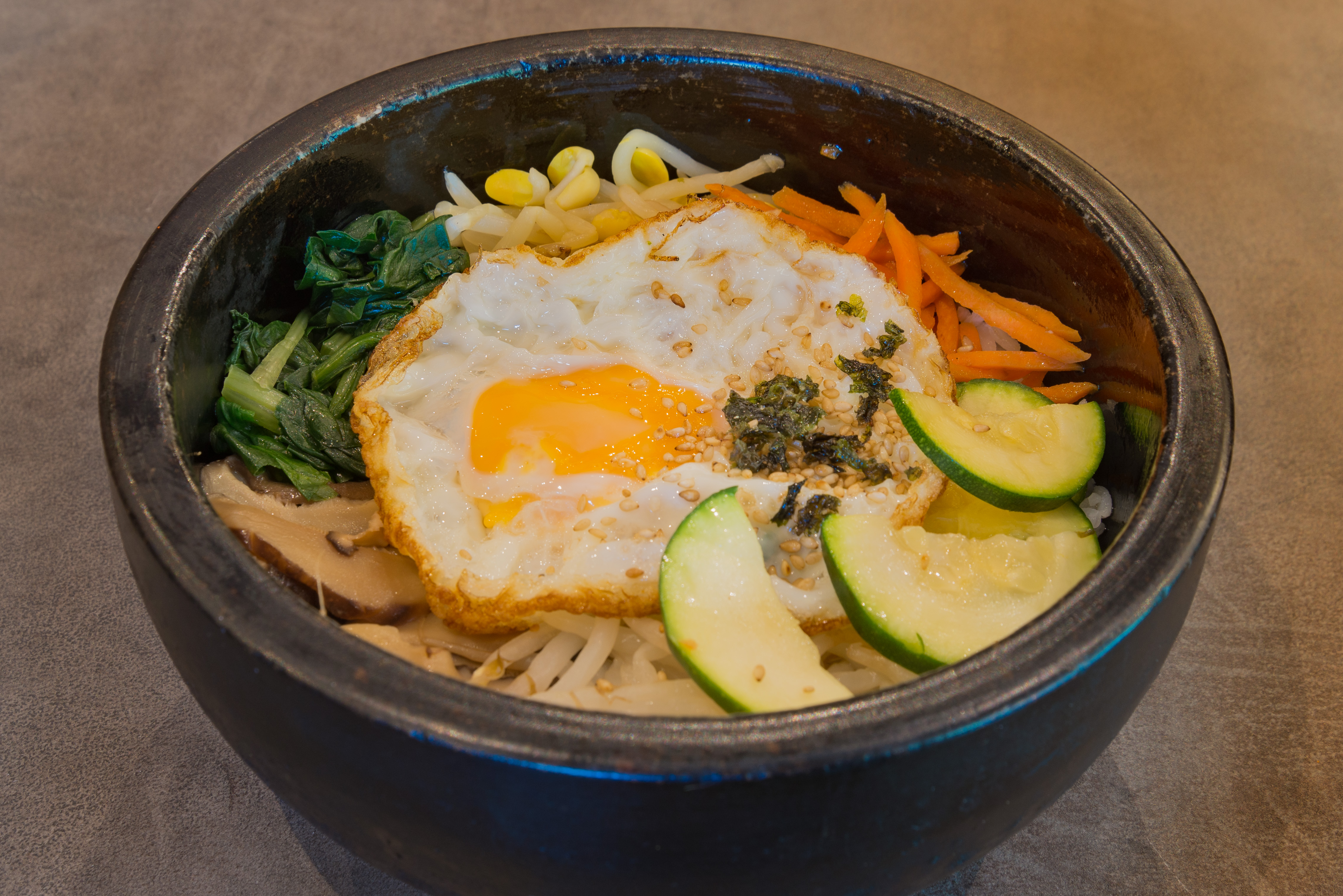 Ce fut ma première fois dans un restaurant coréen à Paris et je n’ai pas été déçu ! Le bimbimbap est réalisé avec la méthode traditionnelle dans un bol en pierre servie brûlante et la serveuse vous fait le mélange avec la sauce sous vos yeux. Un régal. Mes amis ont été très satisfait du buffet et les galettes au choux étaient similaires à ce que l’on peut trouver en Corée. A tester !