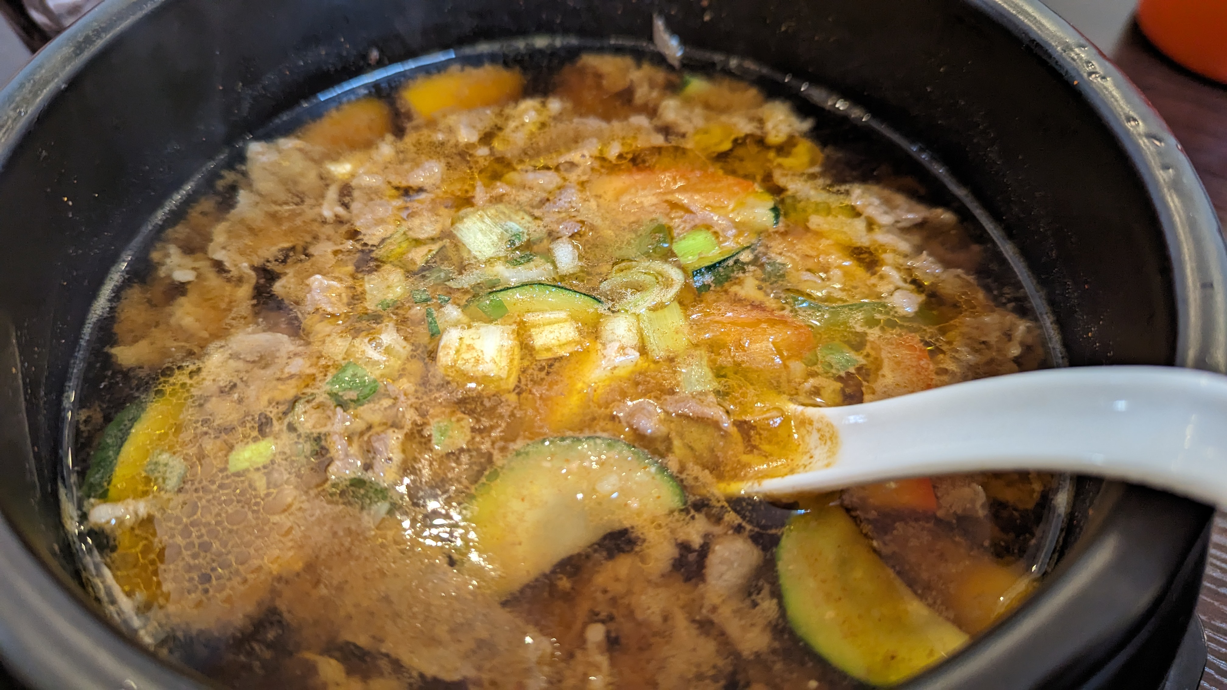 J’ai commandé ragoût porc, c’est horrible, jamais vu le carrot dans le soup, et l’odeur de kimchi est bizarre, c’est pas professionnel.