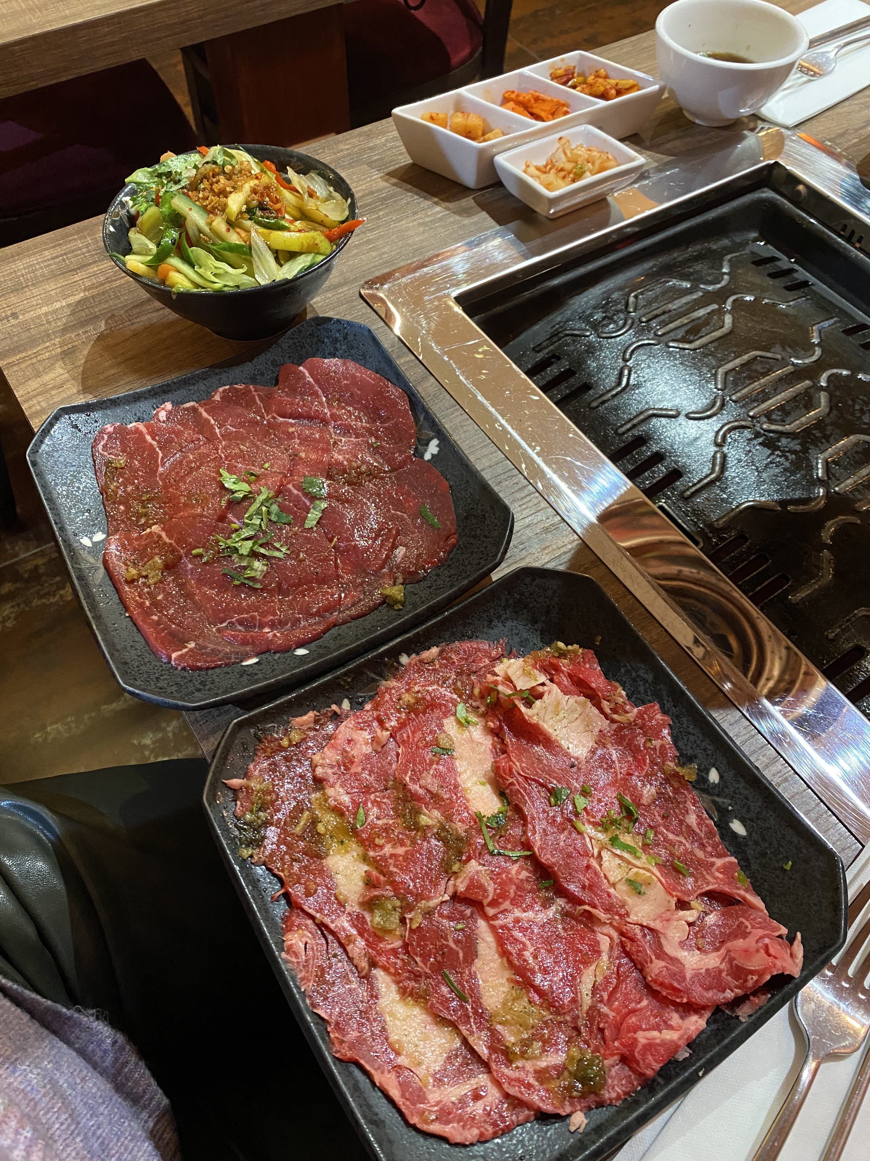 Le concept est original mais c'est dommage qu'on a pas gardé le concept du vrai barbecue coréen avec la salade. Le kimchi était sucré et pas assez piquant à mon goût. Je trouve que le rapport qualité prix est en dessous de la moyenne. Il y a beaucoup mieux ailleurs.