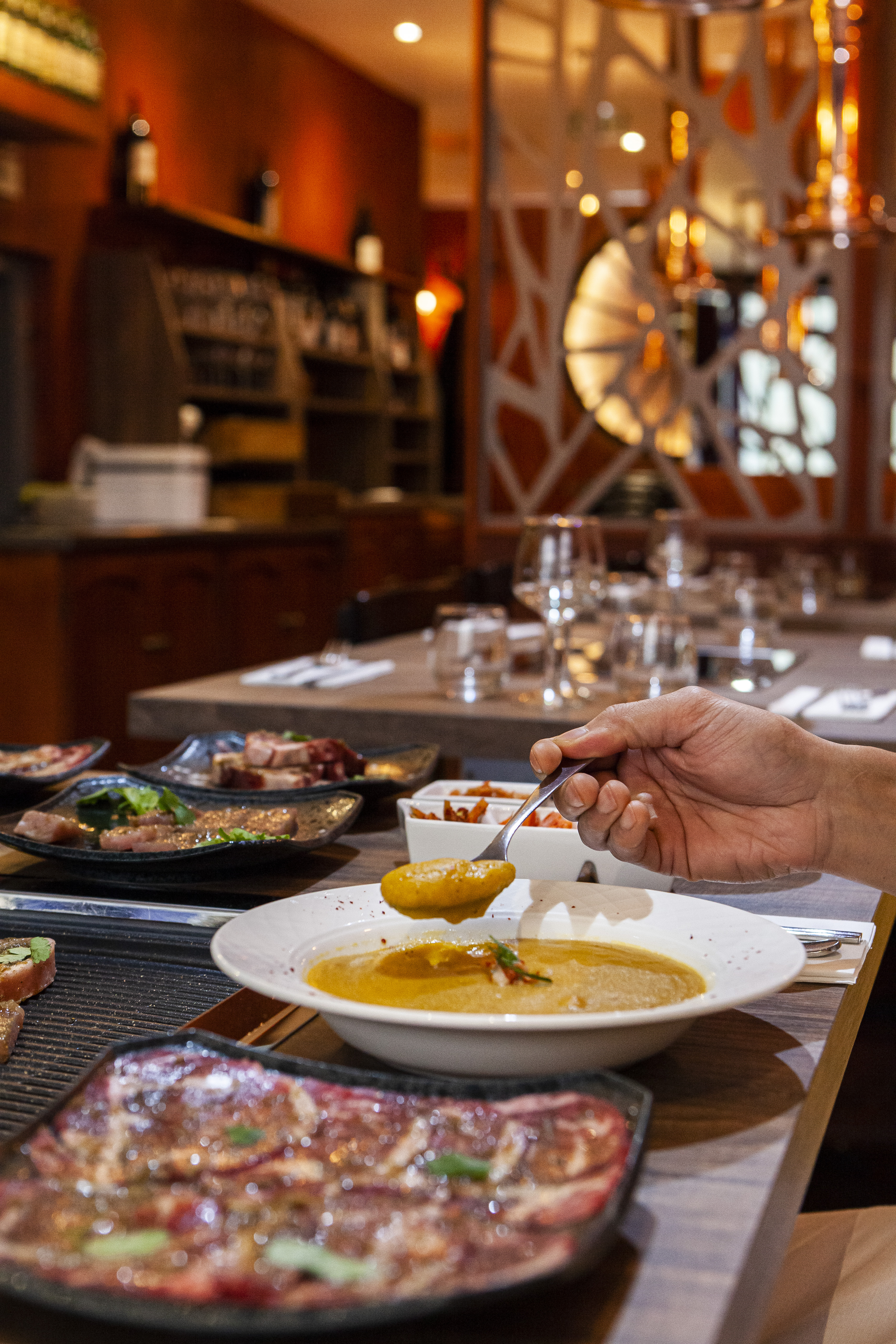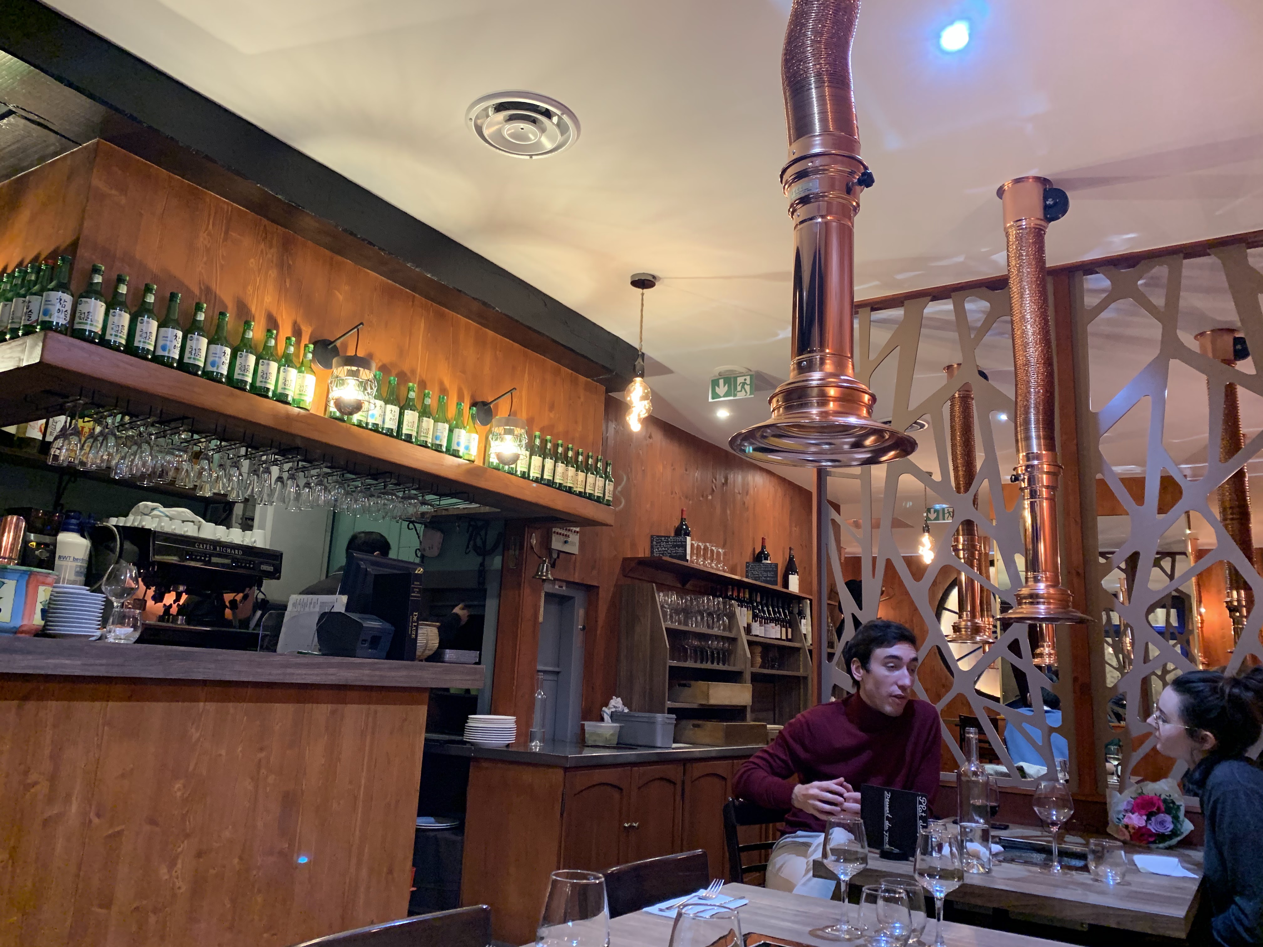 J'avais envie d'essayer un Korean Barbecue depuis quelques mois déjà mais l'occasion ne s'était jamais présenté, me baladant sur La Fourchette j'ai trouvé ce restaurant et la réduction de 30% me motiva à enfin faire le pas. Résultats des courses: pleinement satisfait. Le staff est adorable et travaille avec des produits de qualité. Quelques tentatives de cuisine fusion se cache ici et là et font plutôt mouche comme le chutney à l'aloe vera pour accompagner le foie gras (également fait maison) Il existe un assortiment d'entrées afin de s'initier à une partie de la cuisine coréenne et également un assortiment de viande pour les plus affamés d'entre vous. La carte des vins est pertinente et vous trouverez ce qu'il vous faut que ce soit pour accompagner le foie gras, la viande ou bien le poisson. Il doit sans doute exister d'autres établissements de qualité dans Paris mais je pense retourner dans celui-ci à l'avenir tant la qualité m'a plu et l'équipe était accueillante.