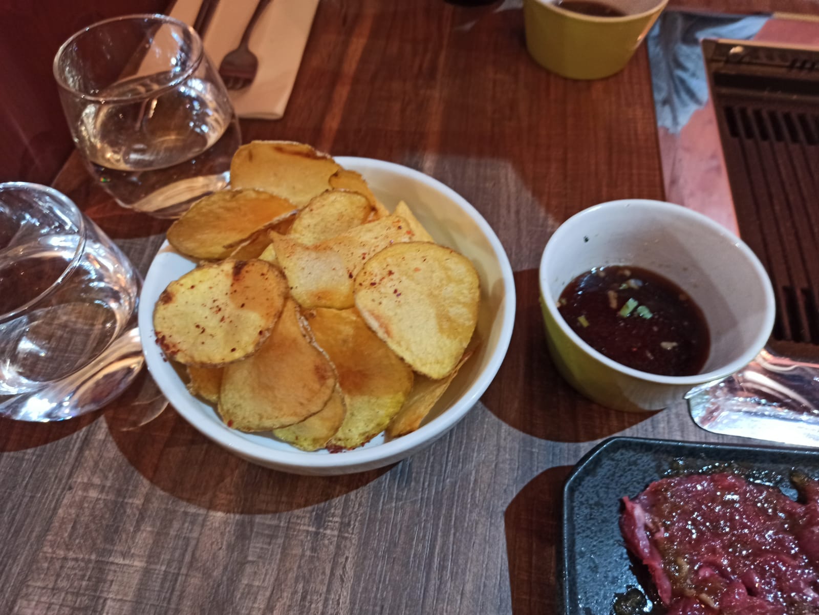 Accueil sympa vraiment! Les ravioles n’ont rien d’extraordinaire je m’attendais à un gout waouhhh je ne sentais pas les pommes caramélisées je pense que c’était dans la sauce?!! Les corns dog aussi rien de fou,le bimbap trop de légumes je sentais pas le riz dommage le poulet dedans était bon mais jai pas eu le waouhhh en le mangeant prttant élu meilleur de Paris! Les prix sont assez cher je pense que c’est du aussi au quartier?!! Pour moi les desserts j’ai trop aimé,boule de litchi trés bonne avec le chocolat une tuerie en bouche et le tiramisu vraiment pas mal d desserts atypiue et qui sont bons! Le service clientèle est trés basique malgré qu’ils sont hyper cool. À bientot quand meme pr gouter votre viande au barbecue😄
