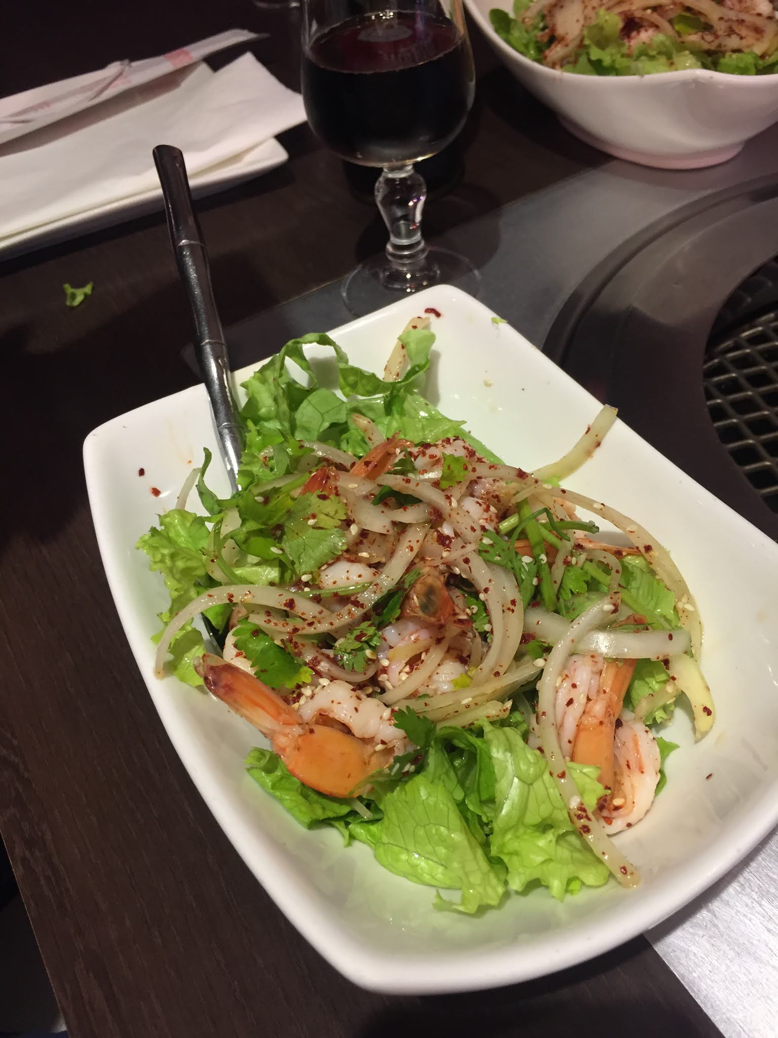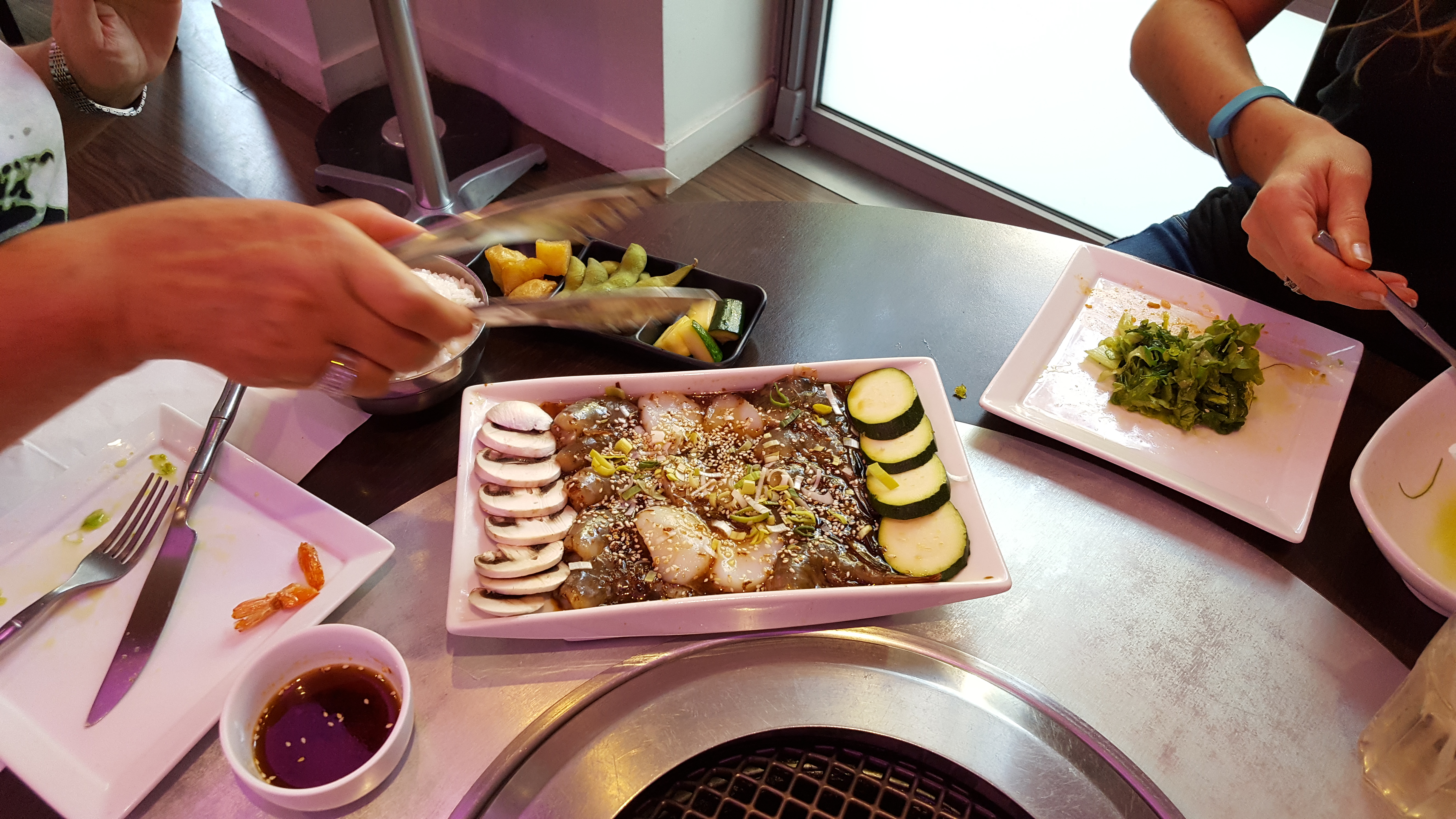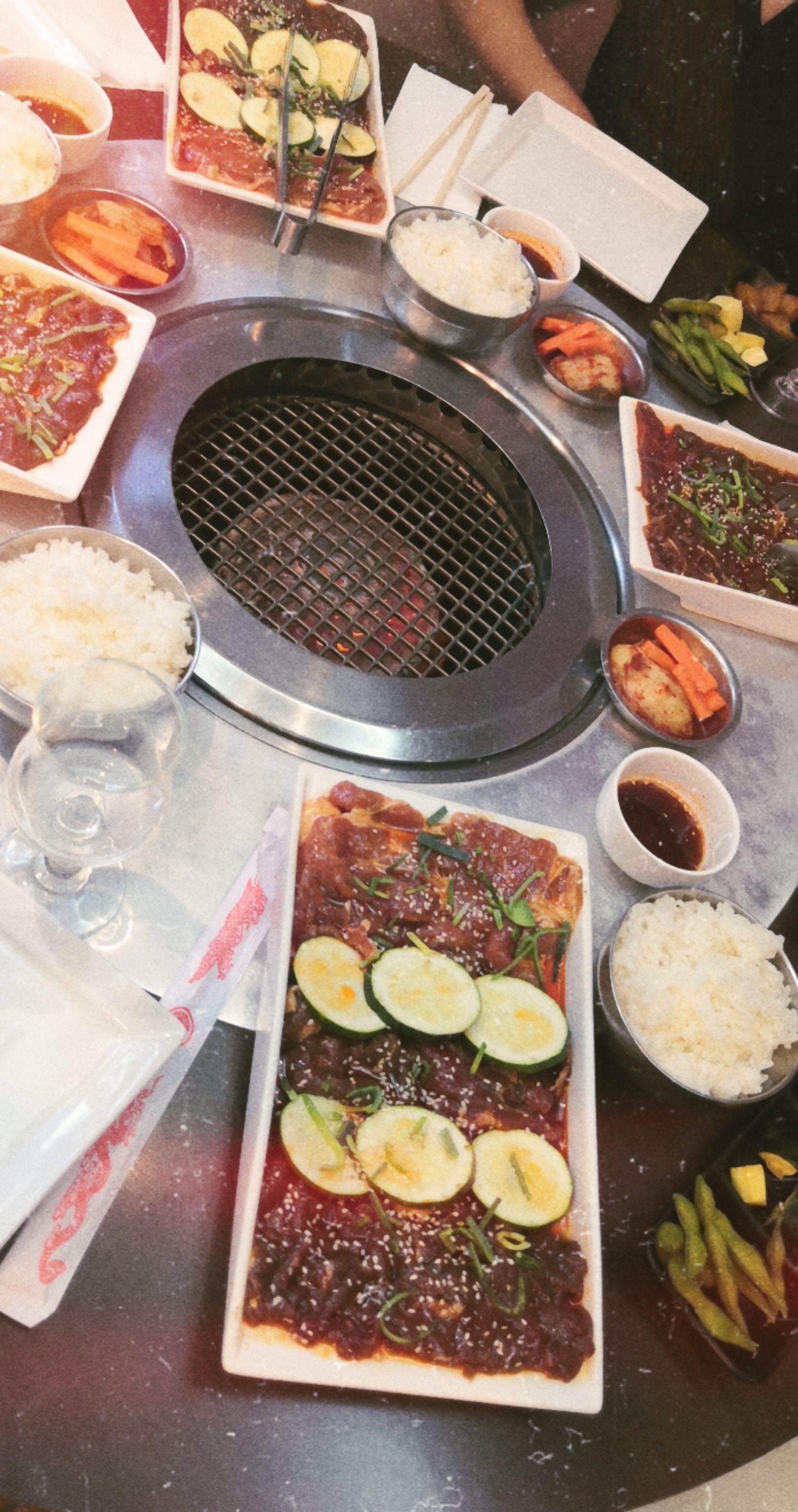 Excellent restaurant barbecue coréen au top, très copieux,limite pas assez de place sur la table...grande table de 7, servis en même temps, un service impeccable...rien à redire!