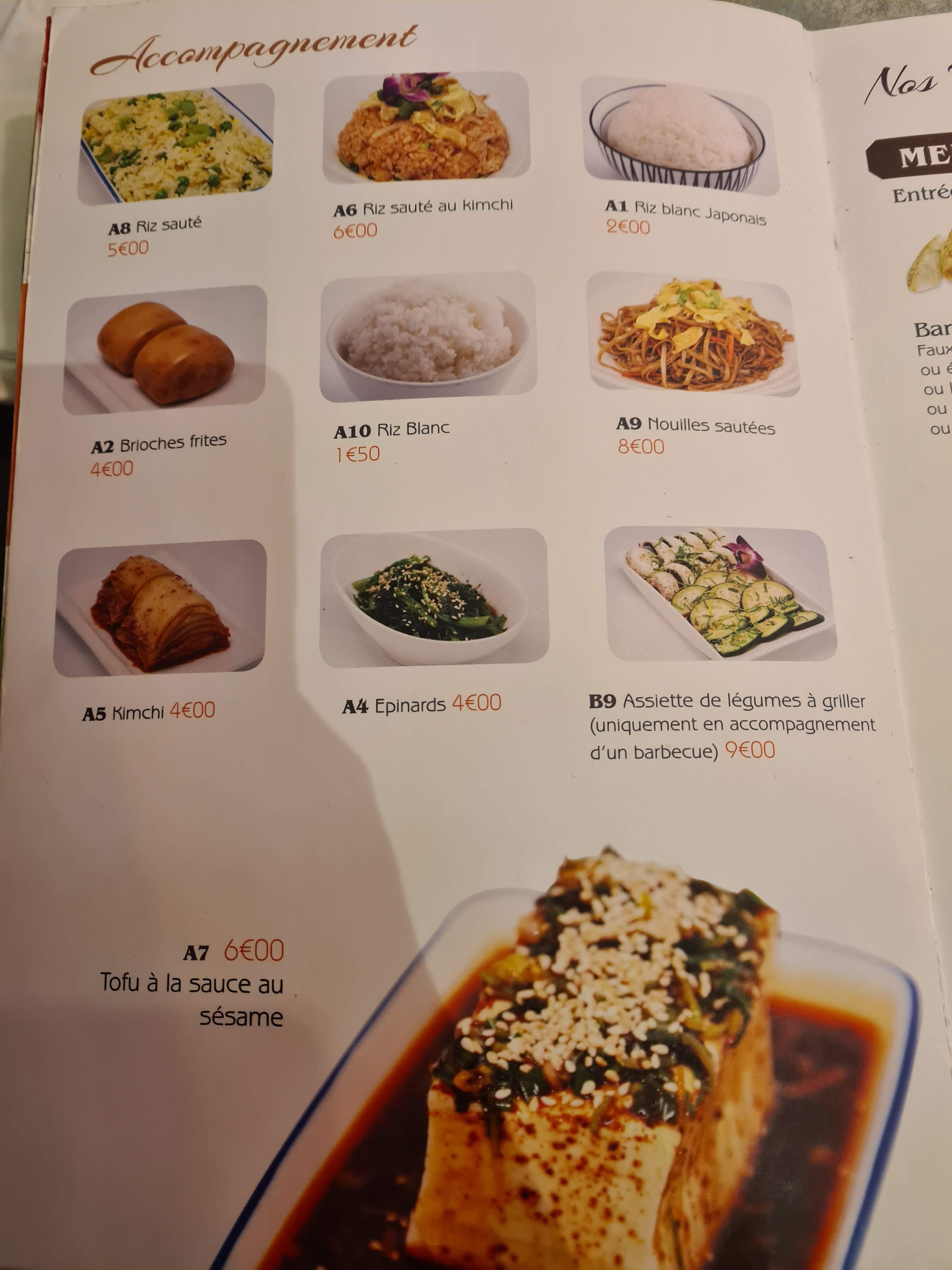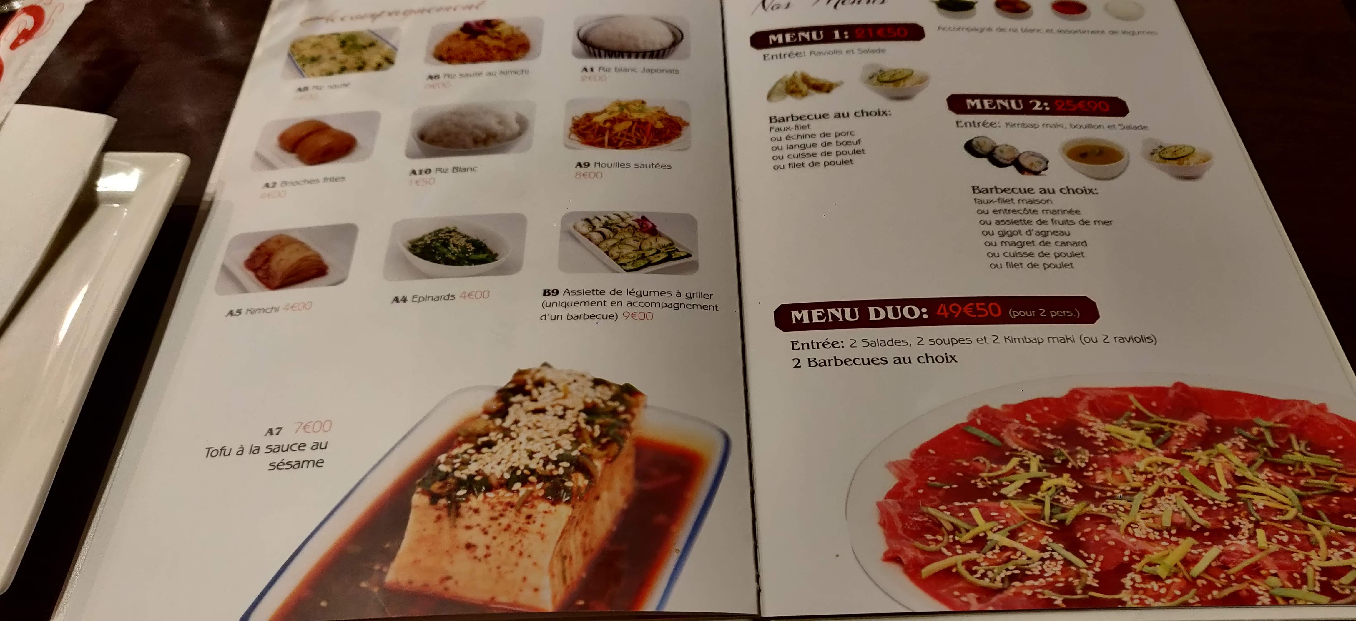 Hormis le barbecue, les autres plats sont majoritairement non coréens, et je ne vous parle même pas du kimchi à 4€ alors que c'est gratuit en Corée, de plus les prix sont élevés