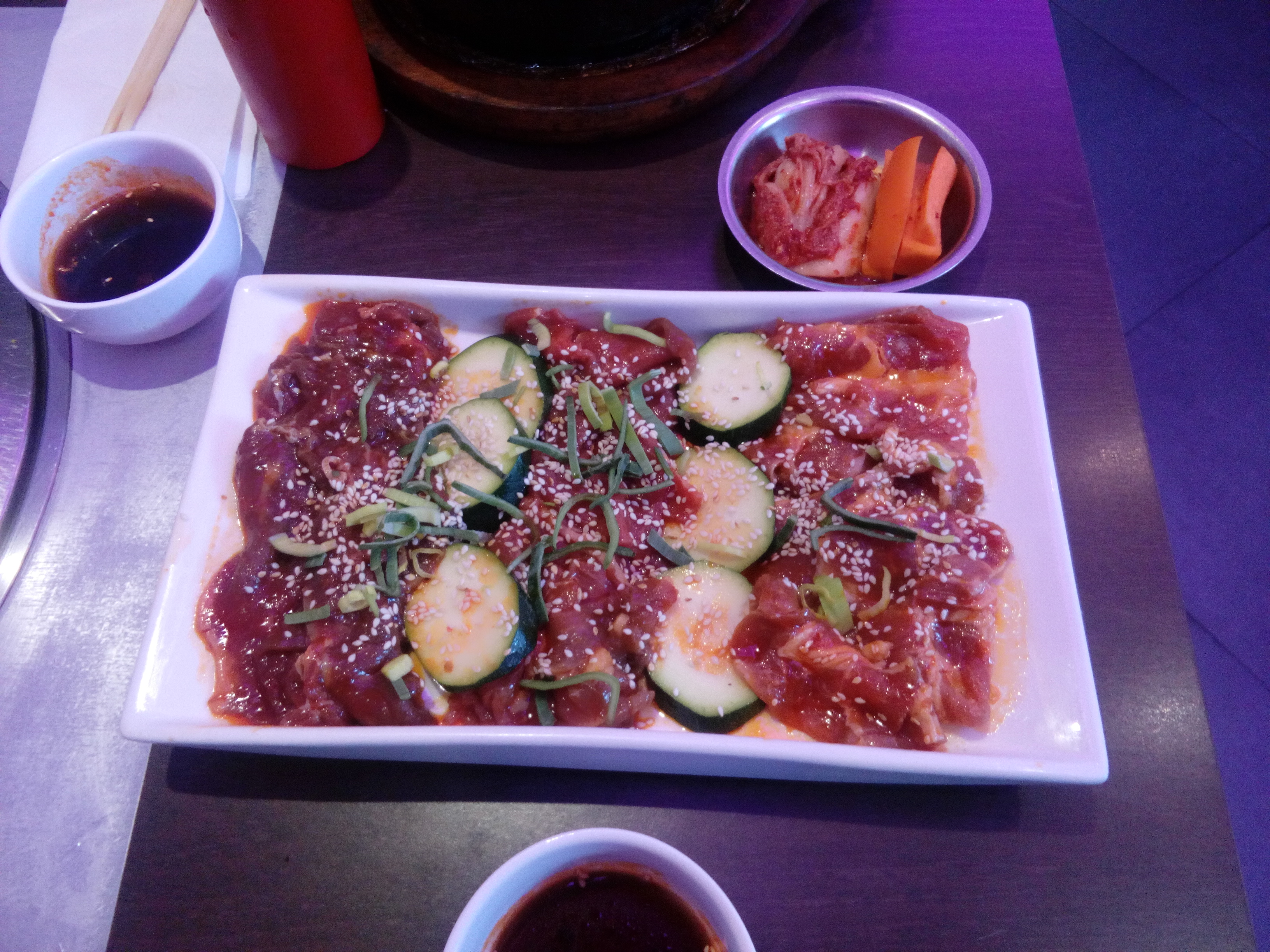 Barbecue coréen succulent, les marinades sont divines. Riz moyen et légumes très relevés. Riz gluant au lait de coco à éviter.