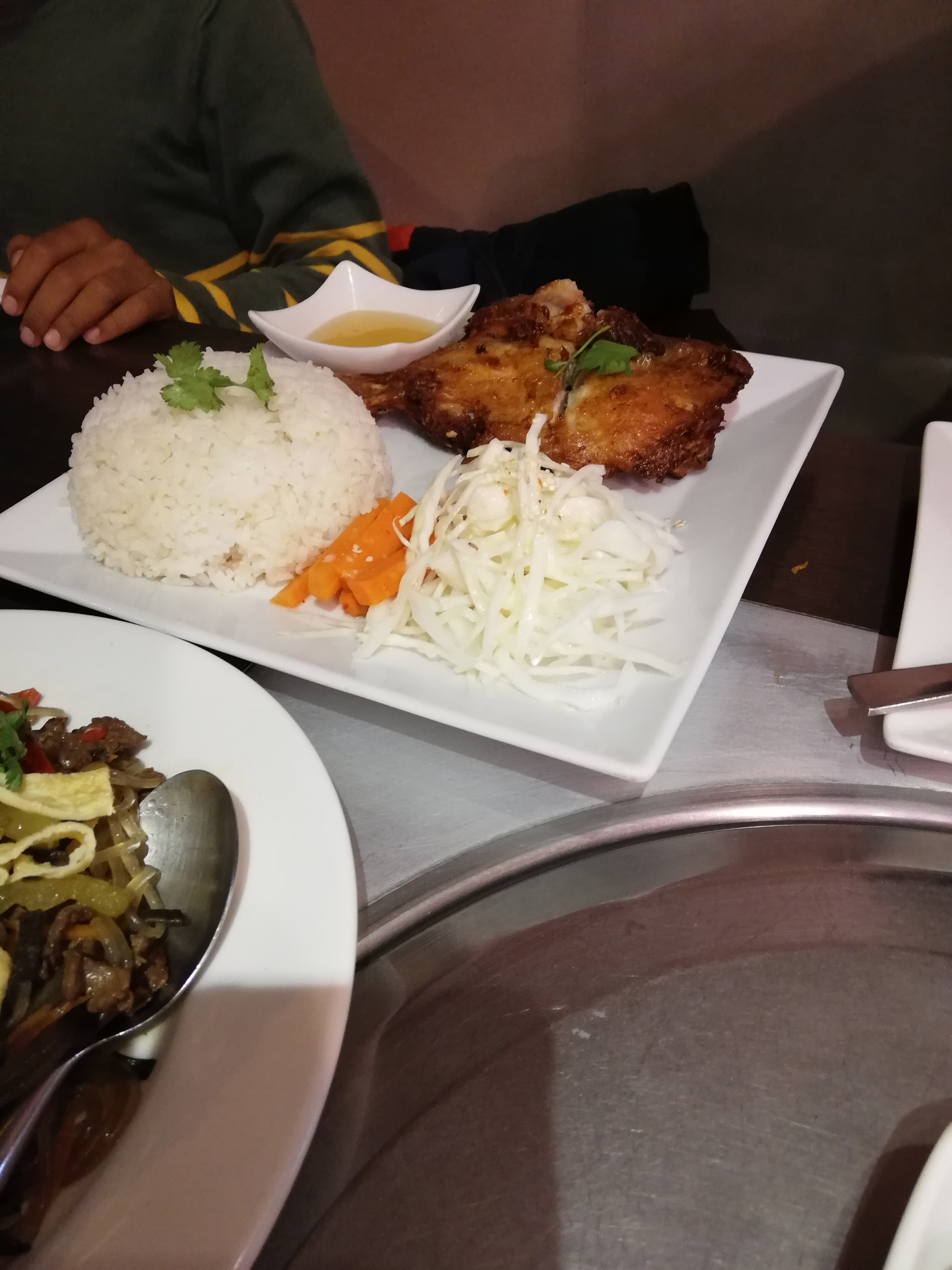 Malgré un important choix de plateaux, nous avons commandé du bœuf mariné qui était bon et les accompagnements bienvenus. Car léger bémol, la marinade était un peu fade. Mais j’insiste, pas de quoi faire un drame car la viande en elle-même était vraiment bonne. Et mention spéciale pour leurs raviolis très très bons. Sur le service, rien à redire si ce n’est qu’il est agréable et rapide.