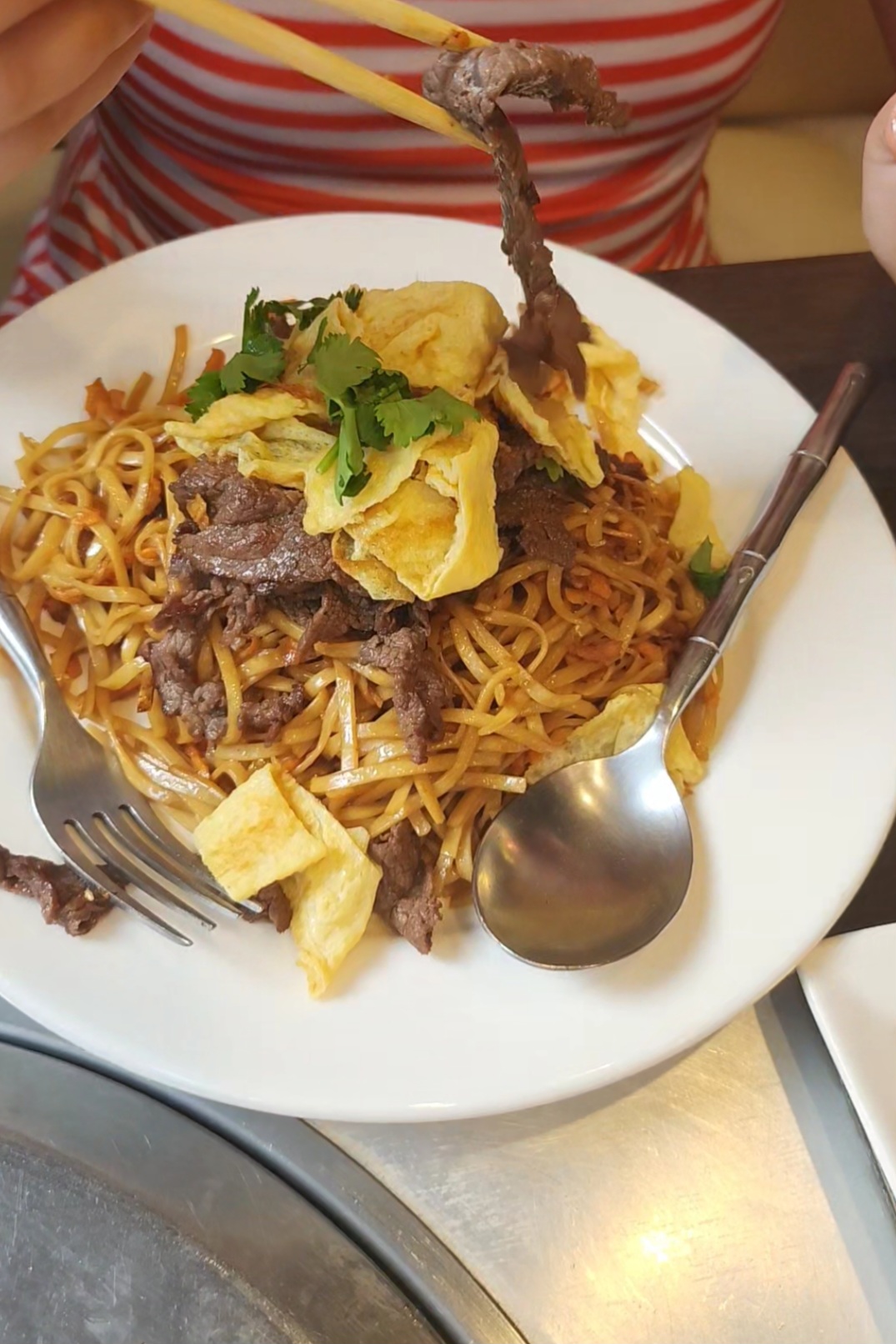 Endroit super beau, prix abordable. Nouilles sautée au bœuf. Excellente je me suis régalé, par contre assez copieux. Je recommande vivement