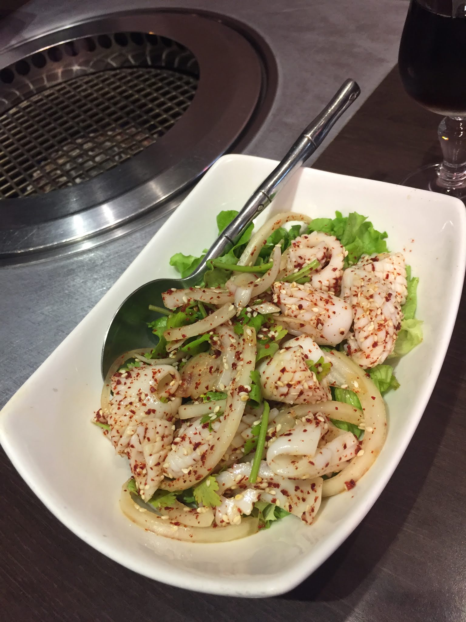 Réservation avec la fourchette (-20%). Serveurs au petit soin. Système ingénieux de barbecue au milieu de la table qui retient la fumée. La prochaine fois je prendrai une entrée (par exemple poulpe car j'aime ça)au lieu d'un dessert (que des glaces). J'ai pris plateau fruits de mer avec saint-jacques, calamars, crevettes. Délicieux. Petits accompagnements divers et variés du très bon au moyen.