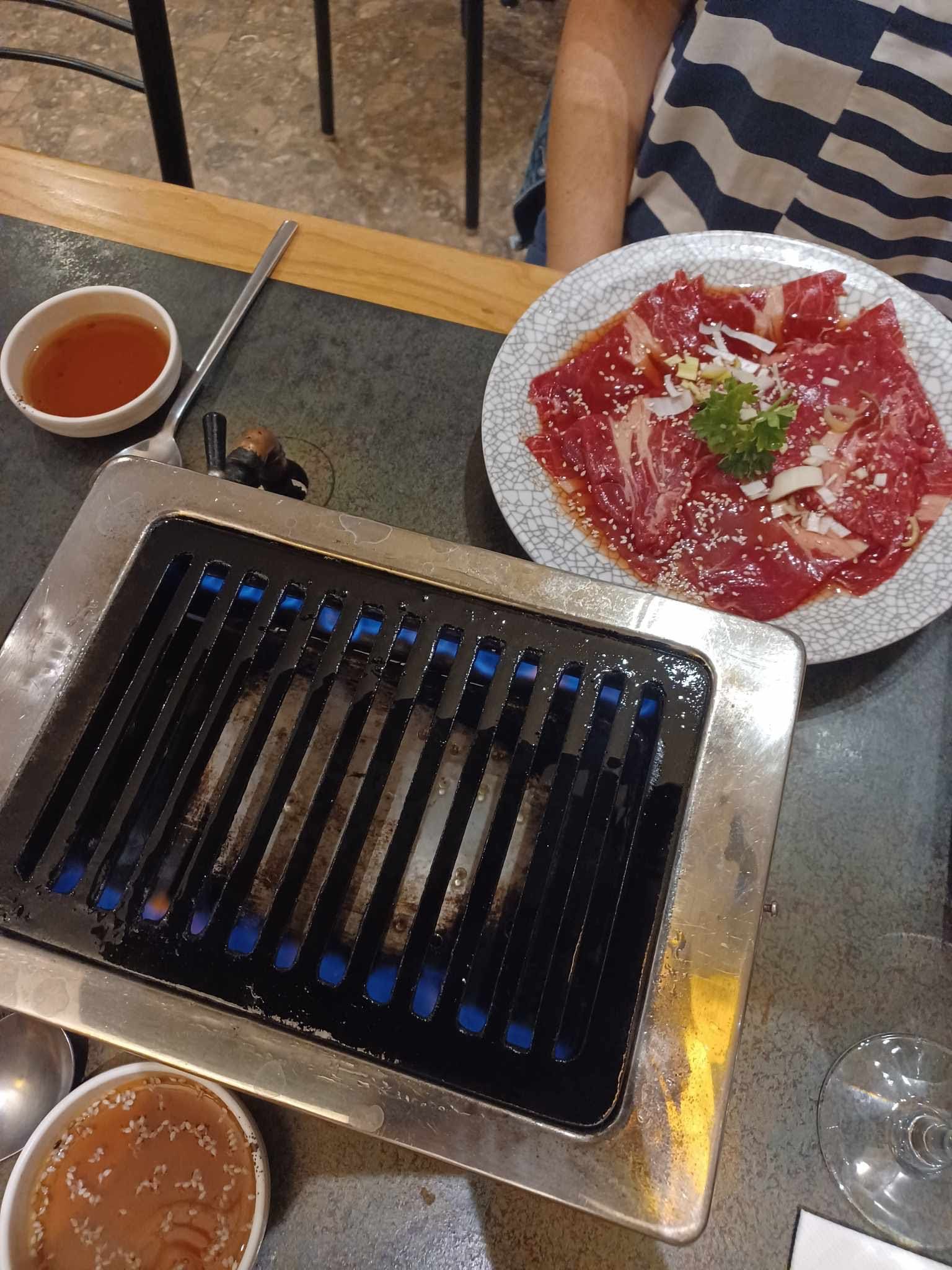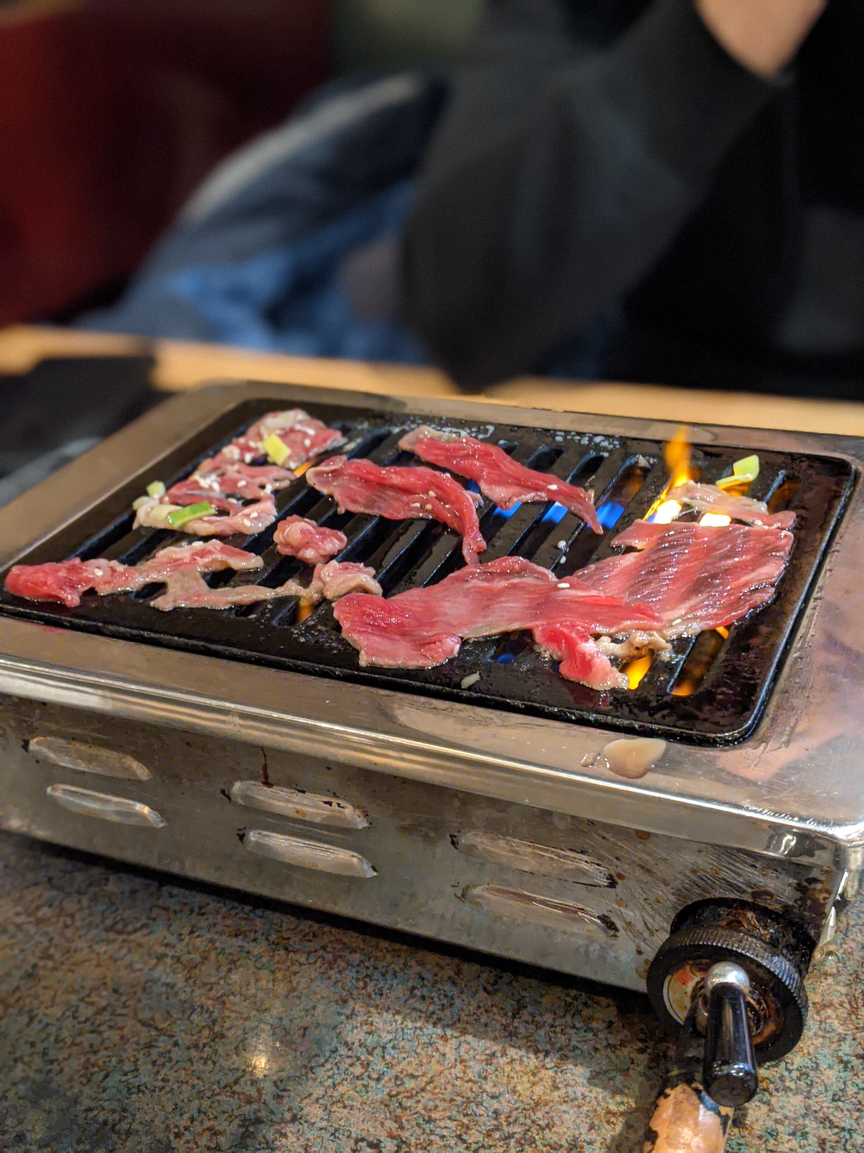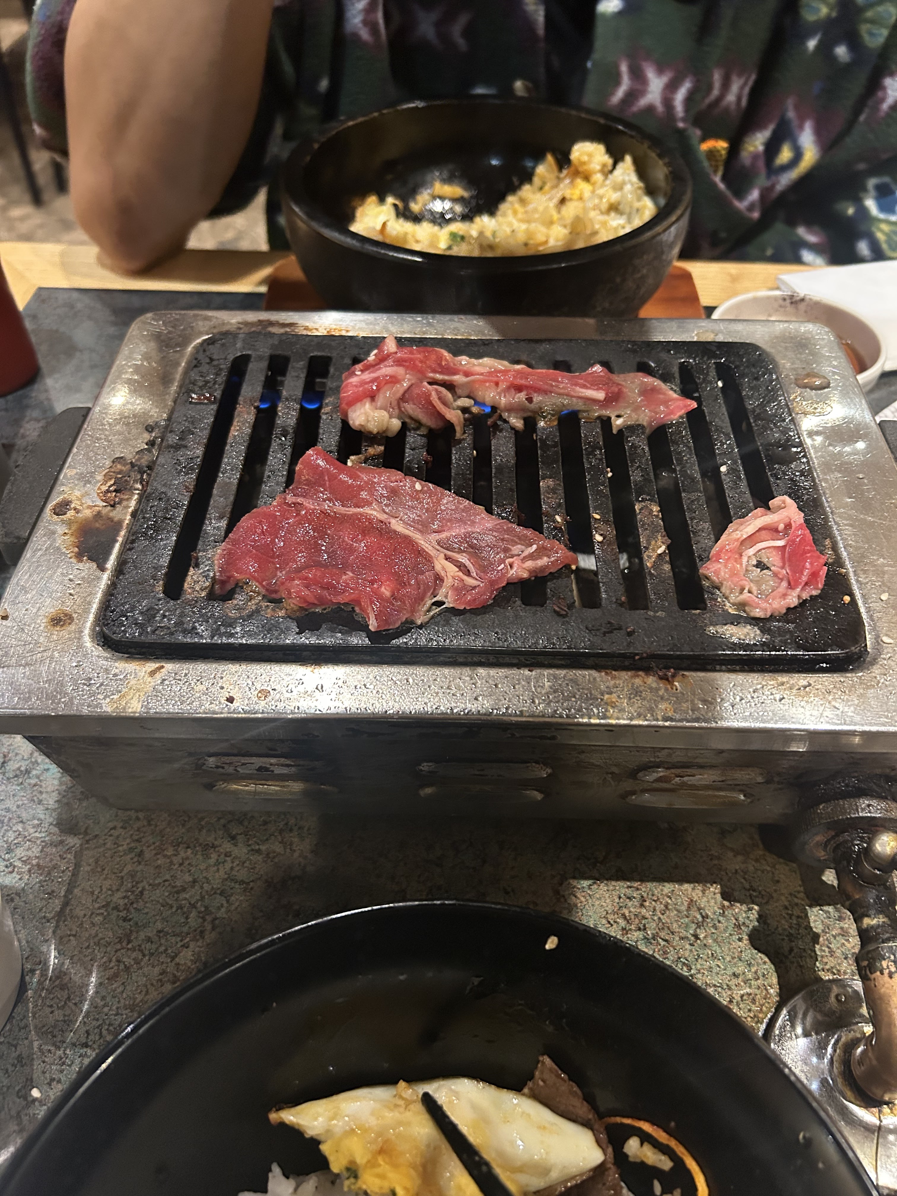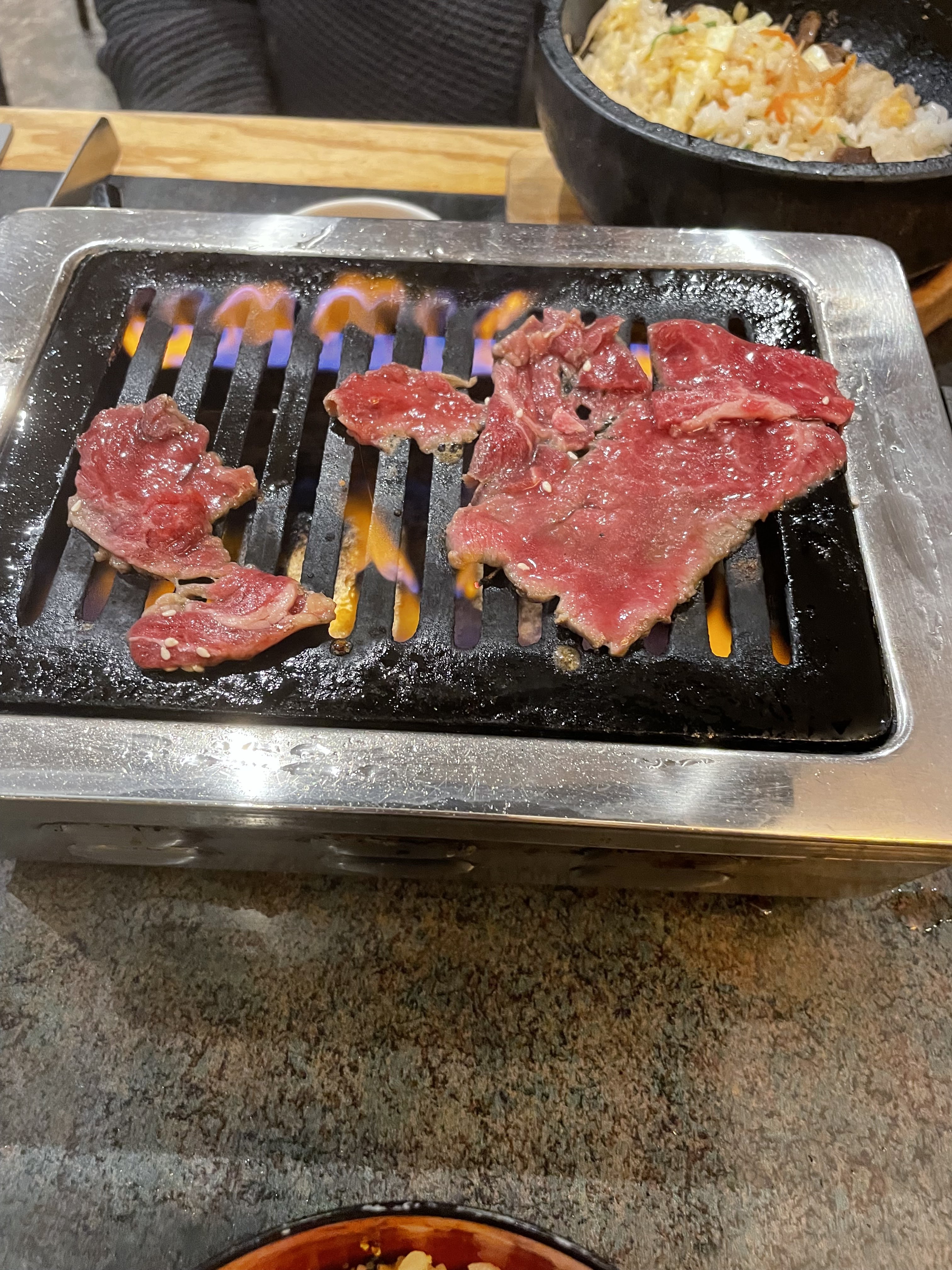 Parfait ! Je recherchais un restaurant de bbq coréen et je n'ai pas été déçue. Pour deux personnes, nous avons pris une assiette de boeuf et nous avons été bien calés. Tout est frais, et c'est très sympa de faire griller sa viande, surtout lorsqu'il fait frais dehors ;)