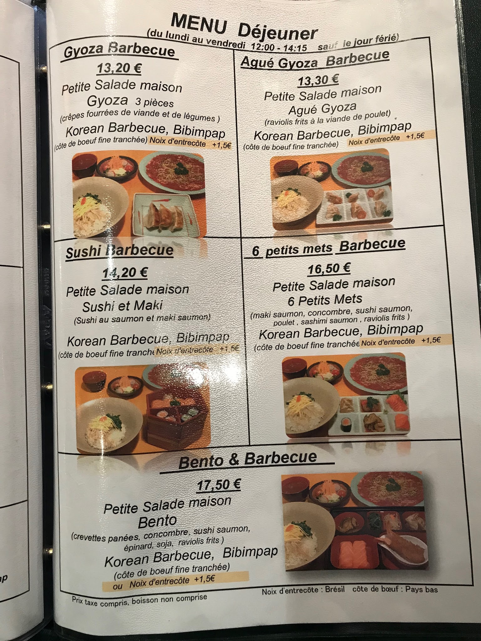 Le restaurant Koréan. Viande bien assaisonné avec une formule très compétitive à midi. Bon rapport qualité / prix. Ça fait plus de 15 ans que j y vais. Moi, je vous conseil de l essayer et de faire vous même votre propre idée !