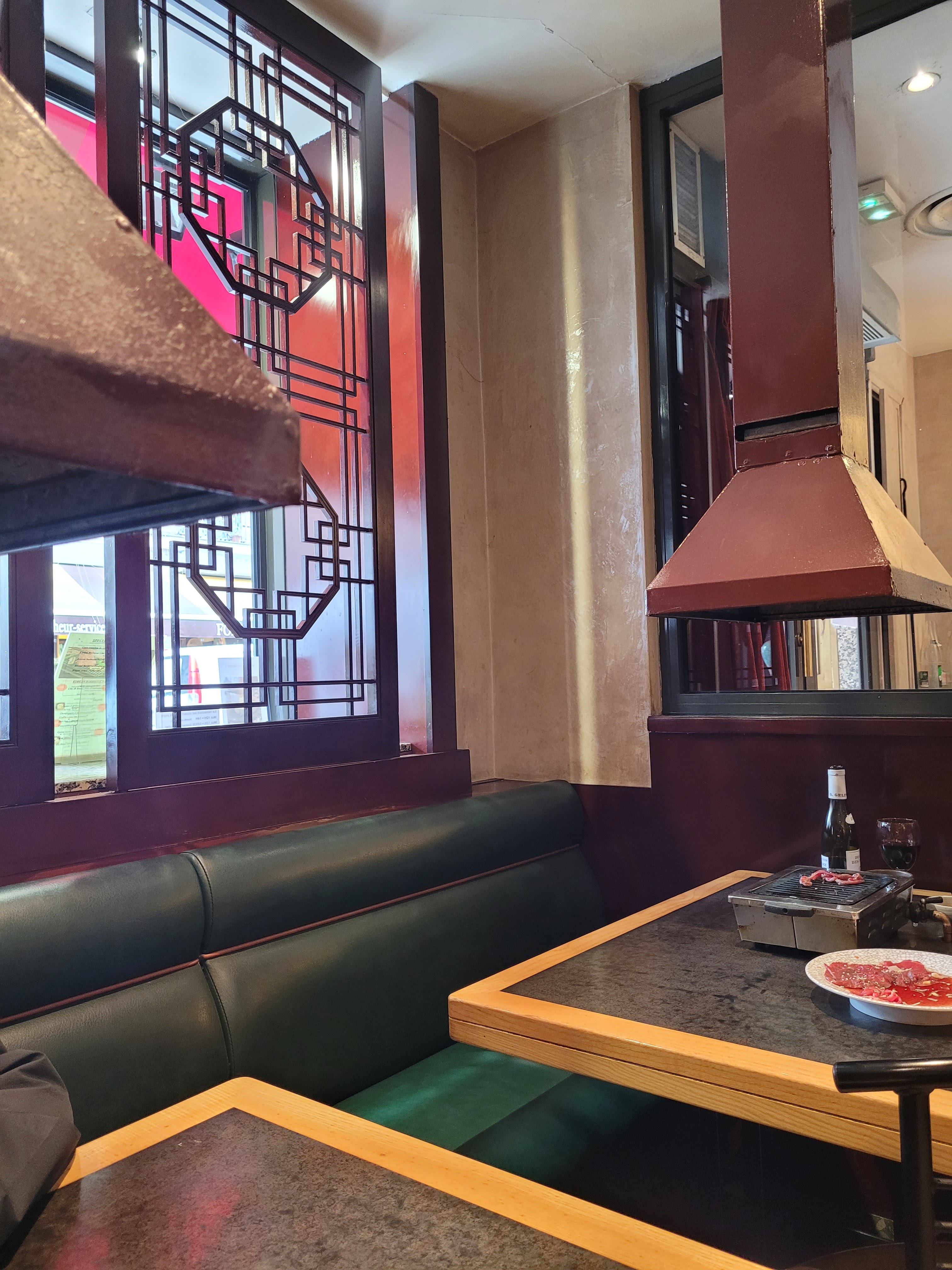 Restaurant de barbecue coréen. Menu midi abordable d’environ 15 euros avec de la noix d’entrecôte. Malheureusement la viande servie pour le barbecue est un peu fade et le service est un peu pressant. A noter que lors de l’utilisation du barbecue, la hotte aspirante n’a pas été allumée. Attention à l’odeur de graillon en sortant du restaurant donc! Toilettes propre.