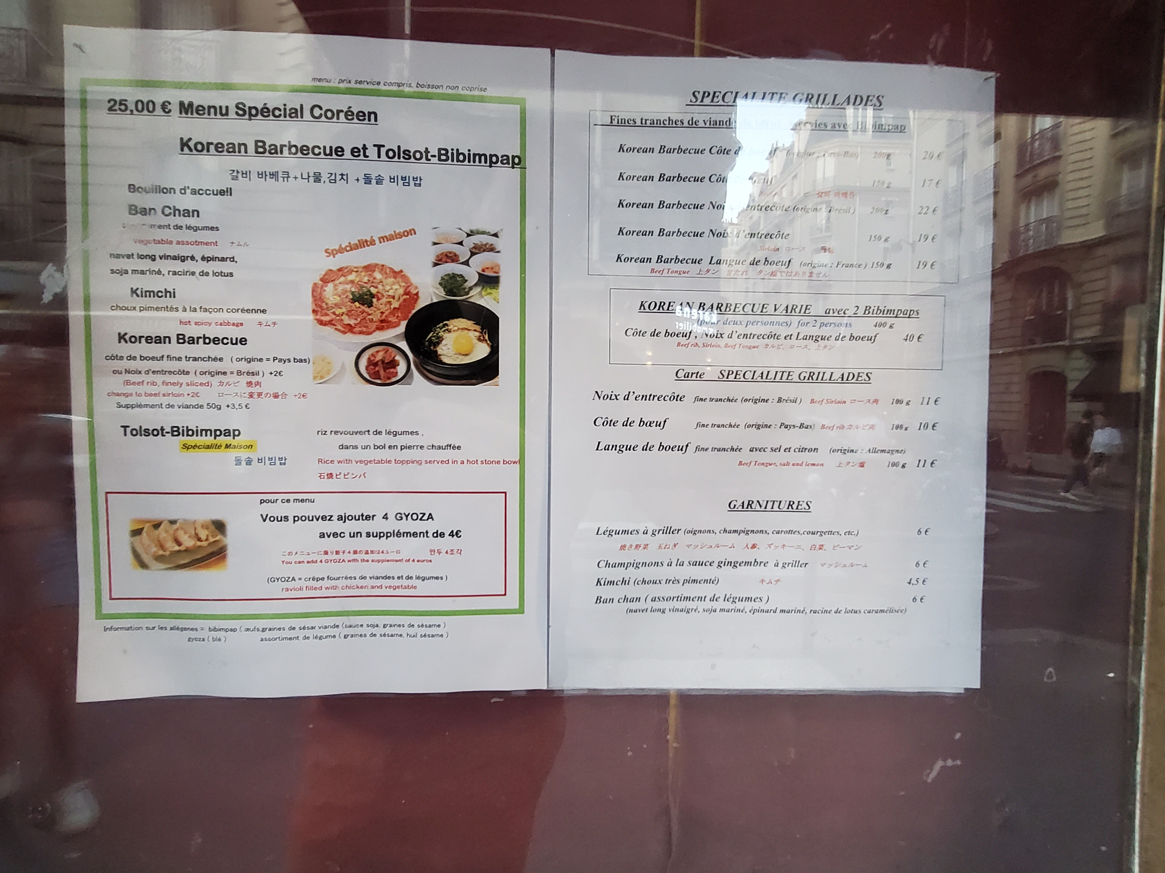 De passage a Paris, nous avons essayé ce restaurant coréen .notre opinion. Super... Bon accueil, bonne cuisine typique coréenne, service rapide et addition très correcte. Je le recommande.