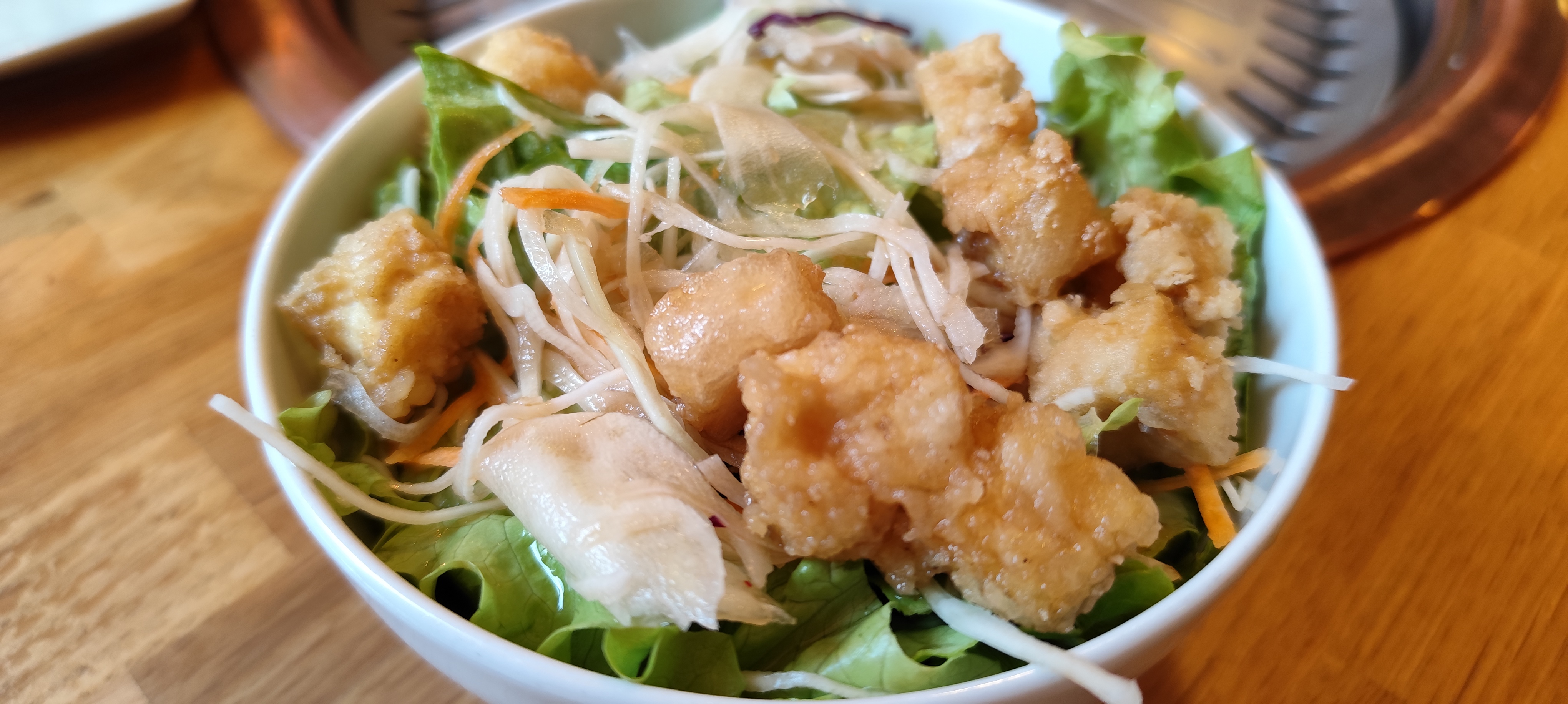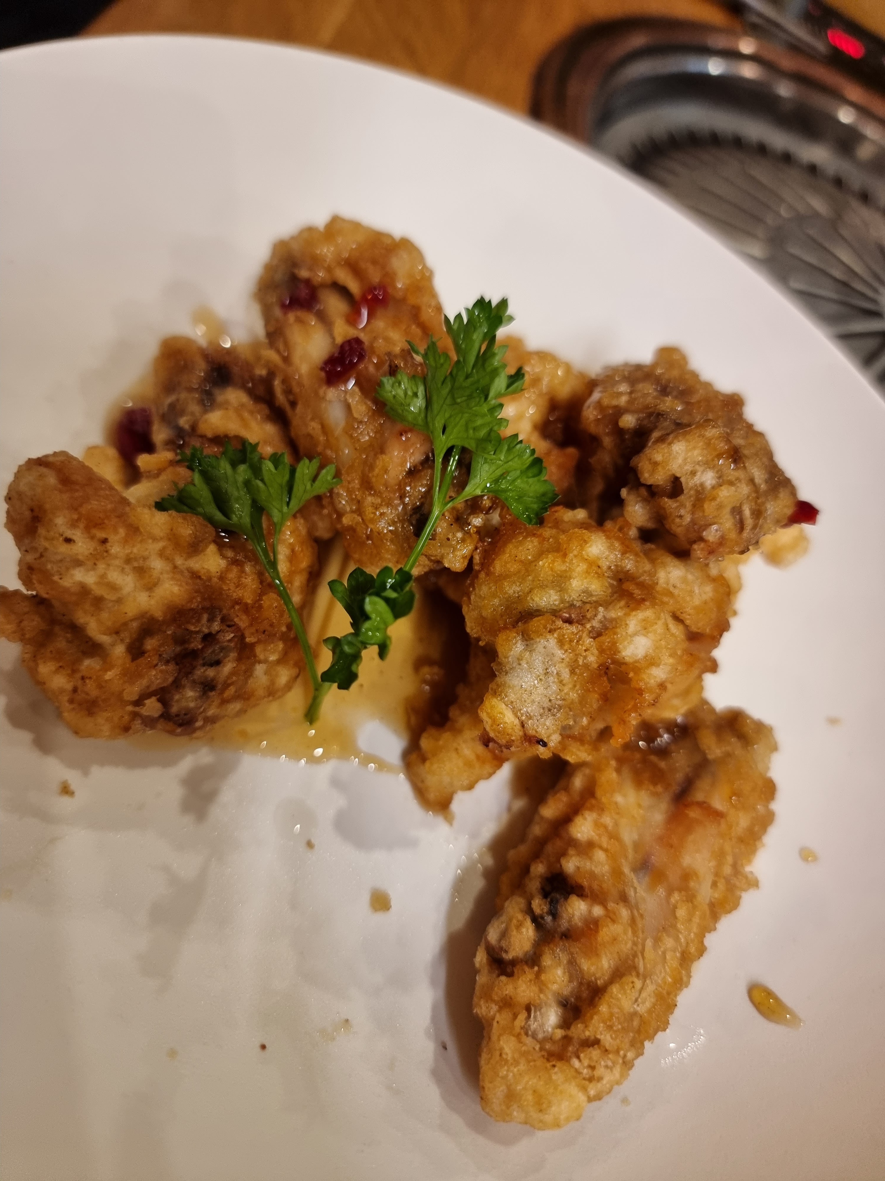 Le menu du midi 18e avec bbq coréen est correct pour le prix. La viande n’est pas à volonté et un seul choix possible mais les proportions c’est suffisantes. L’entrée du menu est variée j’ai prit fried chicken qui était pas bon. Mais les gyosa au légumes en supplément était correct.