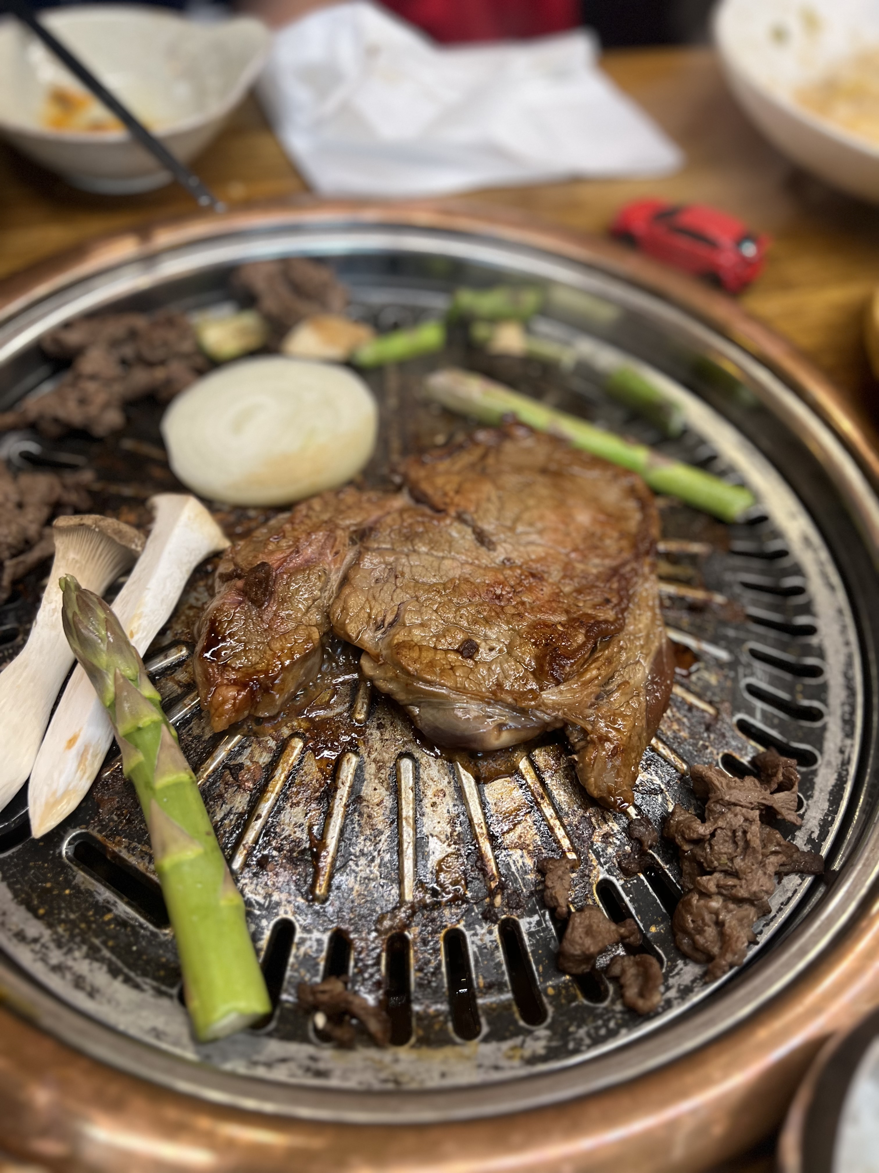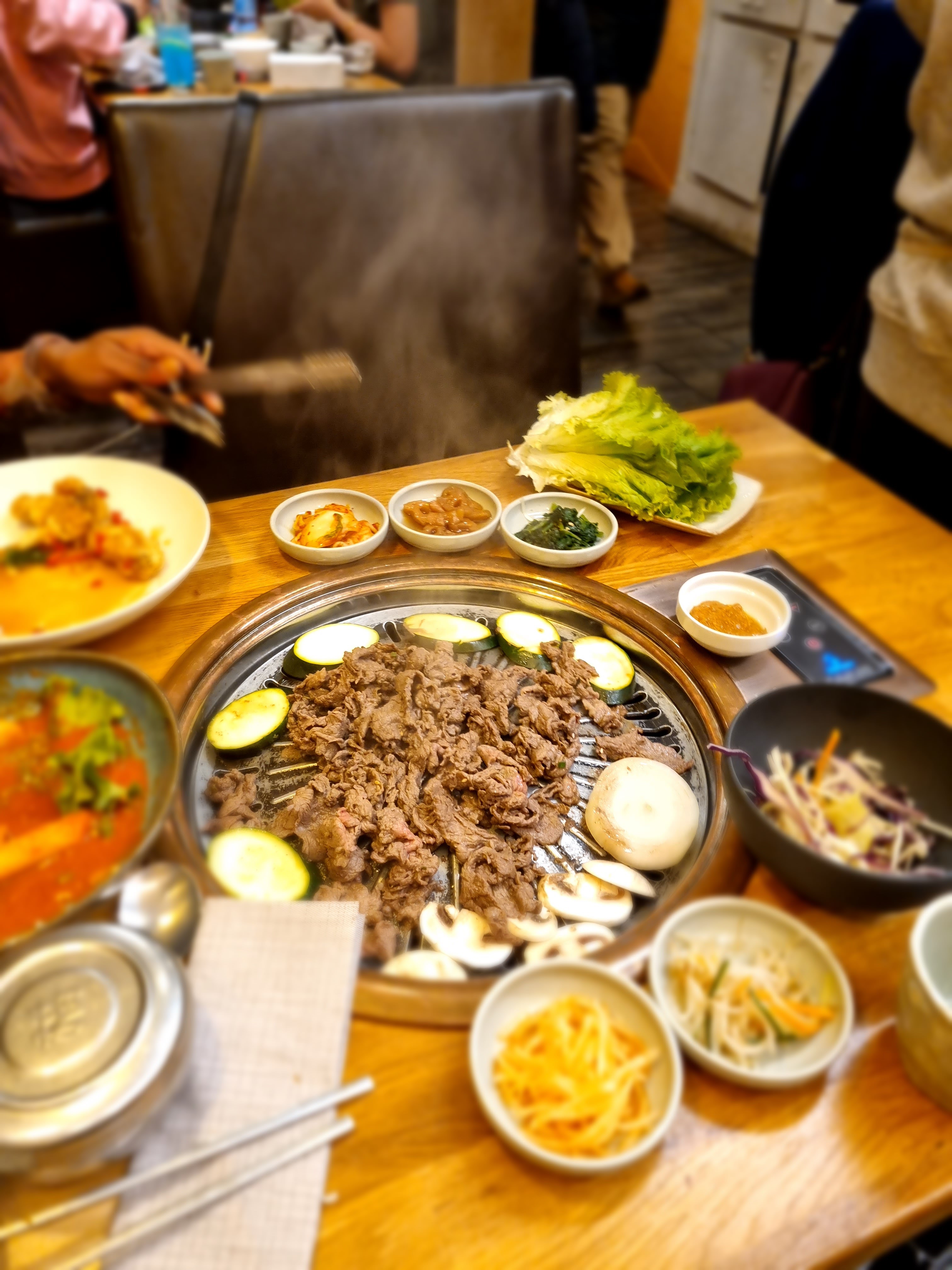 Un beau lieu culinaire du fameux Barbecue coréen, malgré une attente prolongée. Un service plutôt attentionné et des prestations justes, avec des portions de viandes assez généreuses et sapides. Deux points à remonter, les parts de légumes sont fixes et rachitiques à 3 ou 4, et le thé ne fait maigrir que votre portefeuille, il vaut mieux s’abstenir