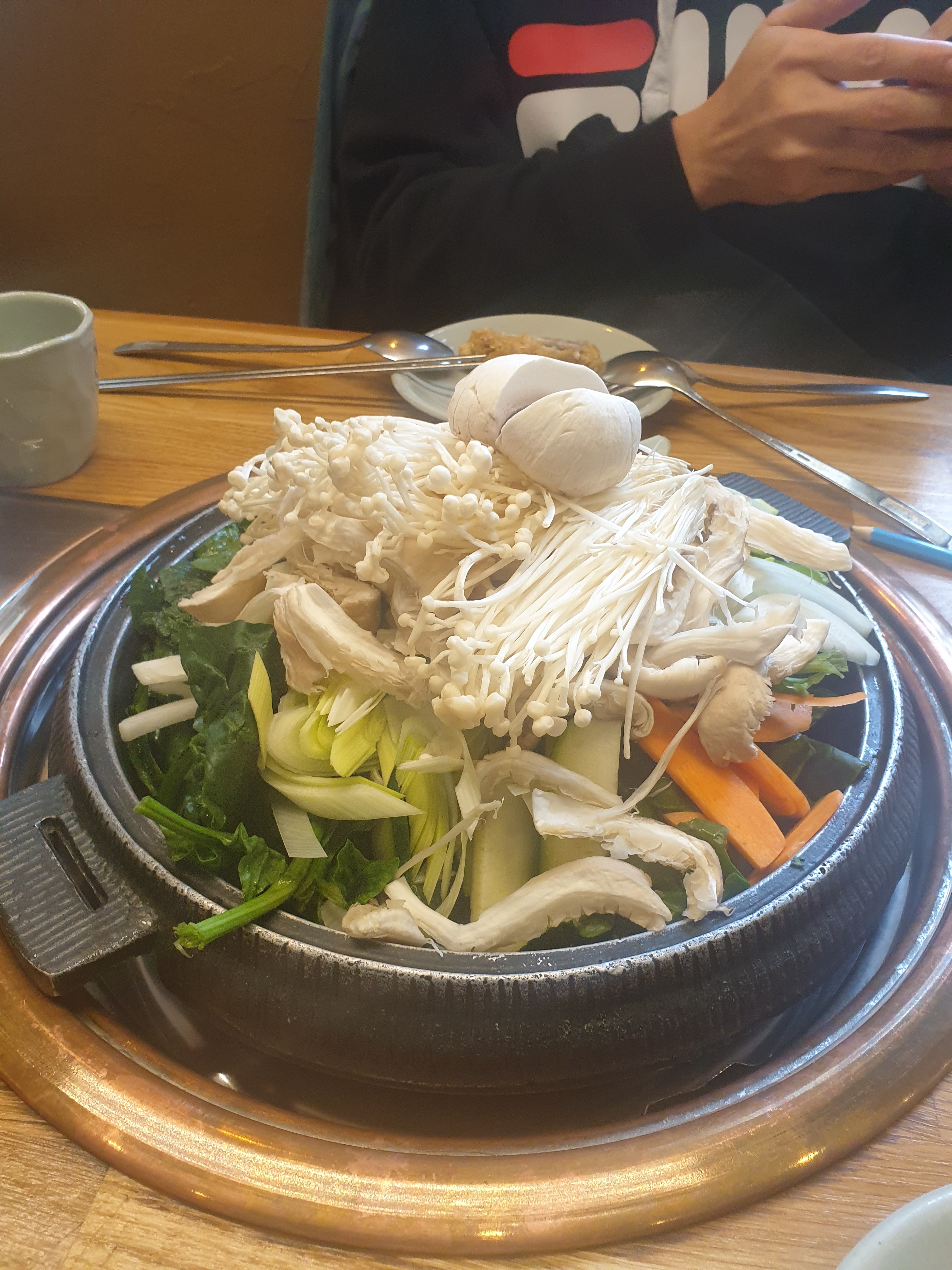 Le restaurant est grand et la salle à l'étage agréable. La nourriture est excellente mais 2 points negatifs: la serveurse etait très froide et zéro explications donc heureusement que j'avais déjà mangé une fondue coréenne dans un autre restaurant. Surtout le mec qui sort des toilettes femme et part direct en cuisine sans se laver les mains j'espère que c pcq il a un supersavon antibacterien en cuisine....