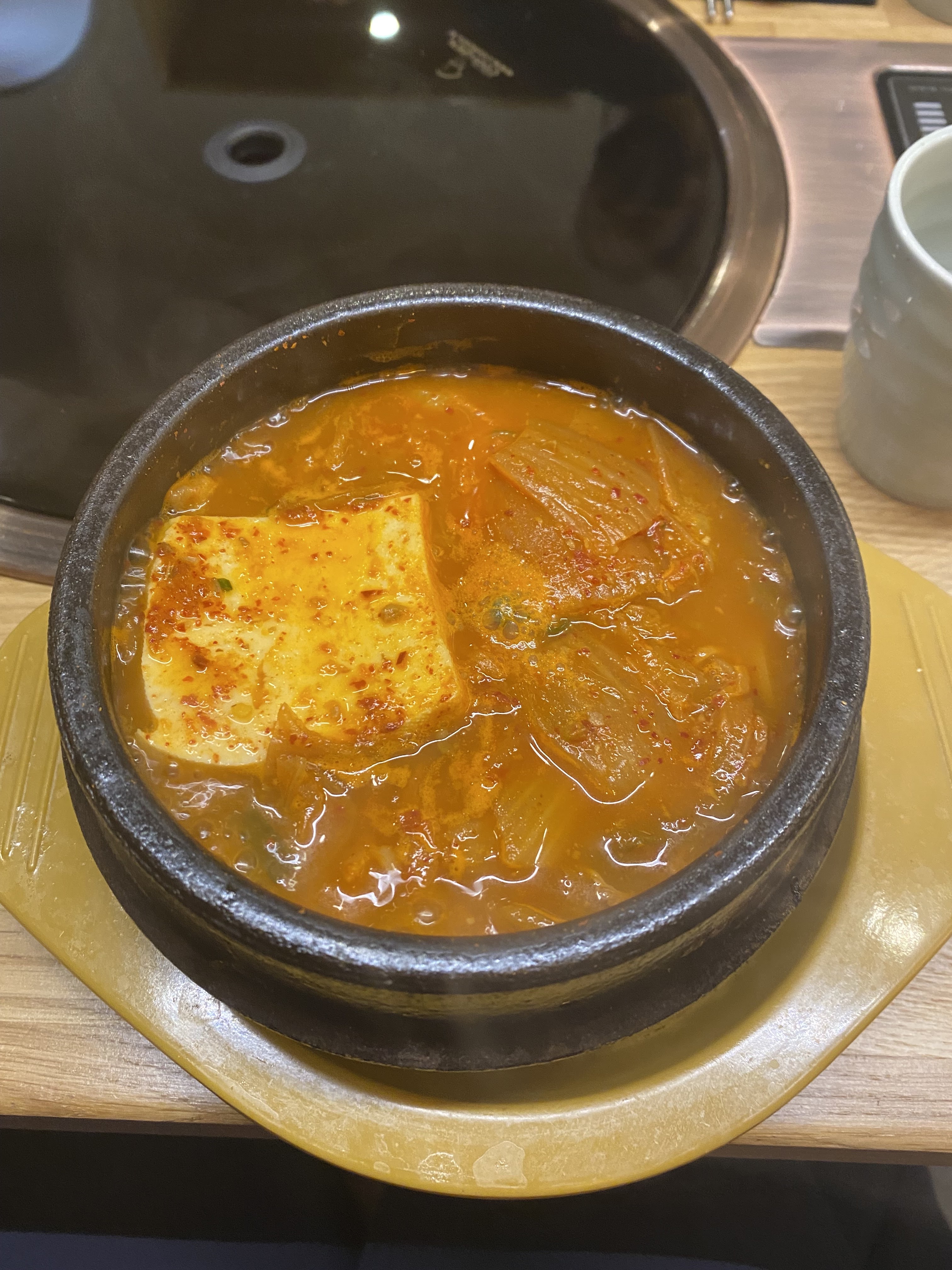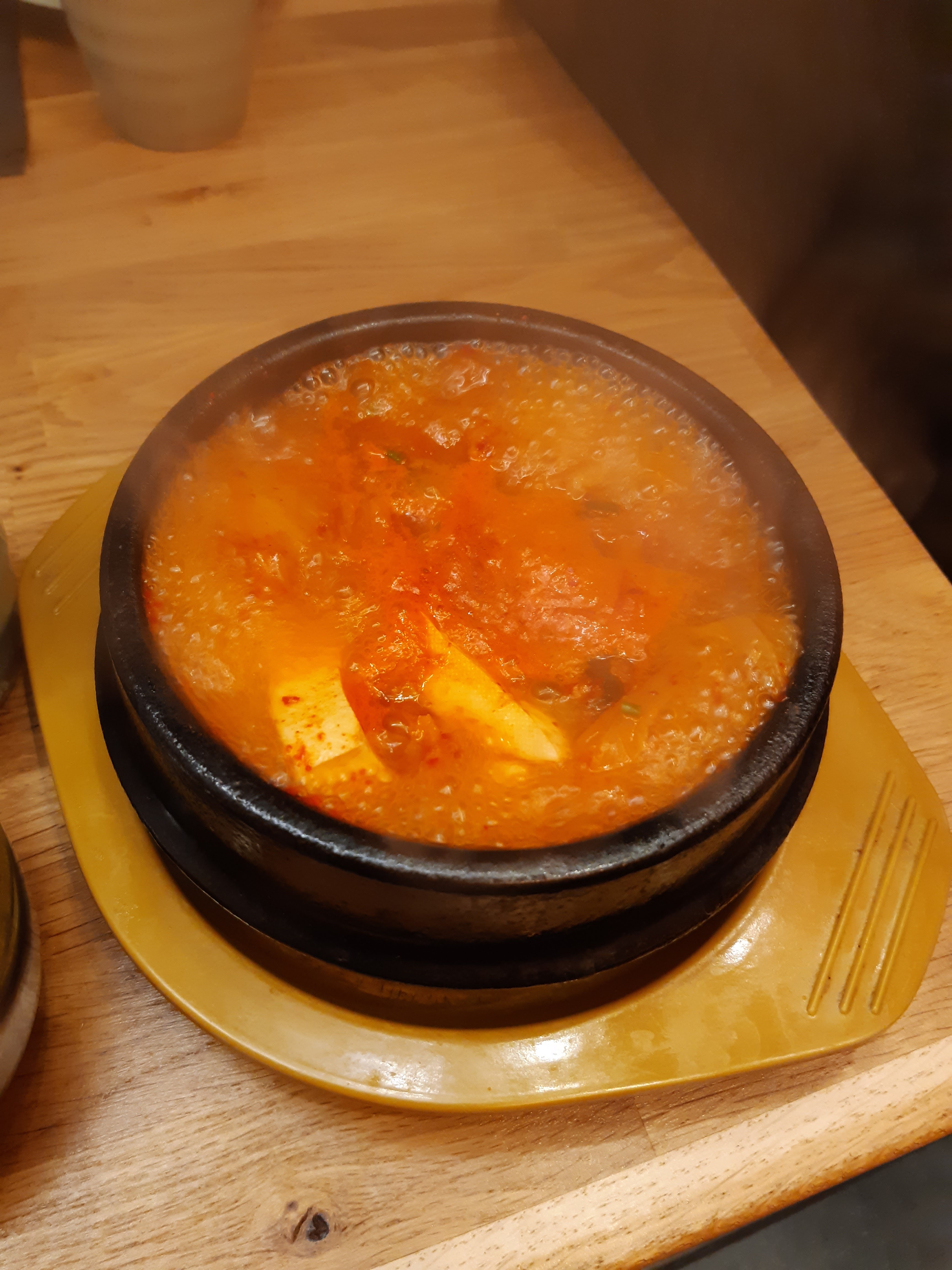 🍗 Le poulet frit était tout simplement délicieux, croustillant et parfaitement assaisonné. Un vrai régal ! 🥘 Le ragoût kimchi-tofu, en revanche, m’a moins plu : il était acidulé, ce qui ne conviendra pas à tous les goûts. 🔥 Le barbecue bœuf bulgogi avait un bon goût, mais malheureusement, la viande était trop cuite. Dommage, car on a appris seulement à la fin qu’on pouvait demander de cuire nous-mêmes. Dans l’ensemble, c’est une belle adresse pour les amateurs de cuisine coréenne🍴