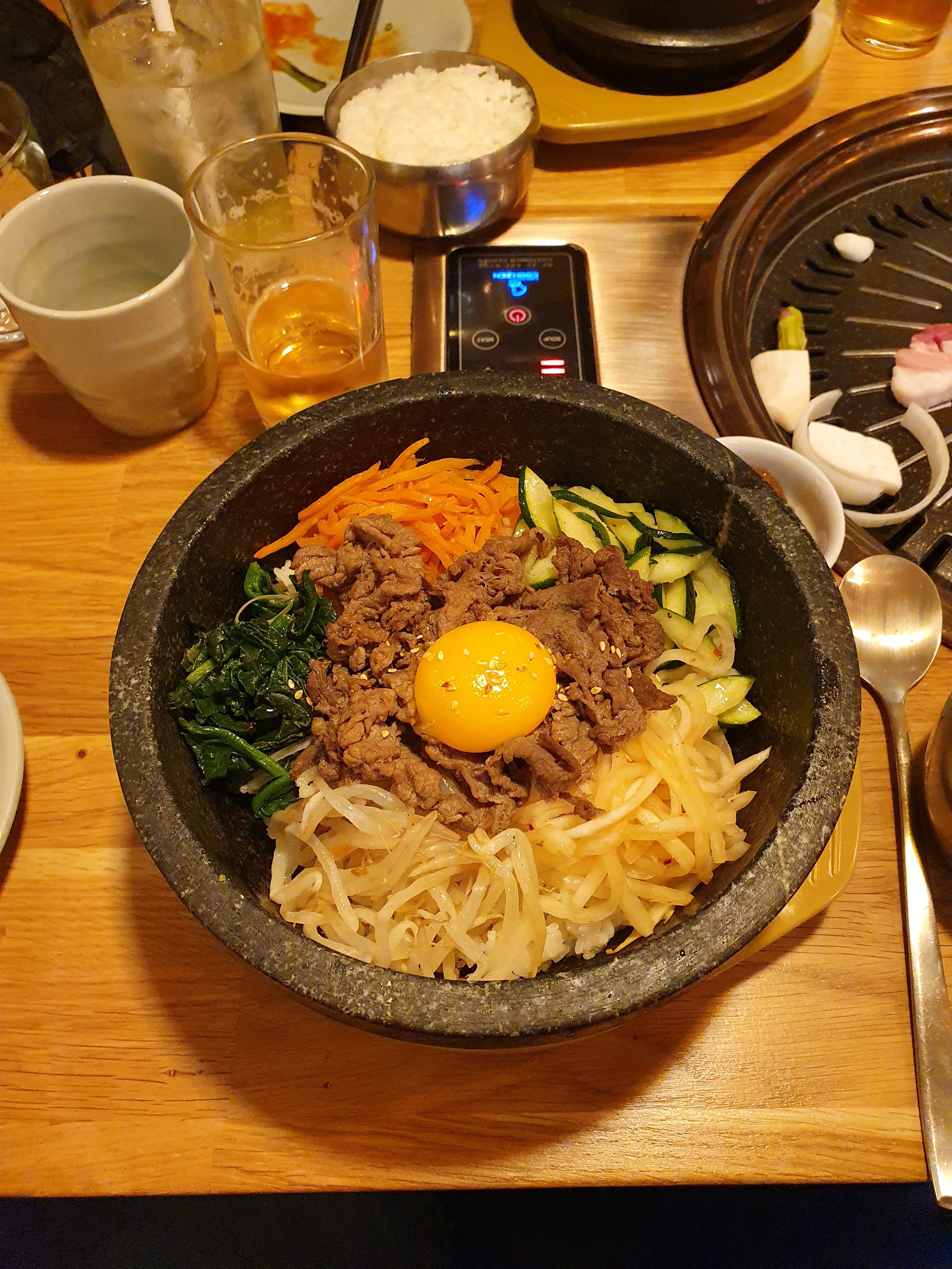 BBQ Coréen plutôt sympa. Mais je regrette qu'une personne nous fasse griller la viande. Faite la cuire en cuisine et servez la, c'est la même chose. On aurai préféré le faire nous même et seulement quand on a envie de manger un morceau de viande grillé. La, tout est ajouté en même temps donc tout est cuit en même temps. Dépêchez-vous de manger pour ne pas manger froid. Le Bibimpap correct mais sans plus, les serveuses très charmantes.