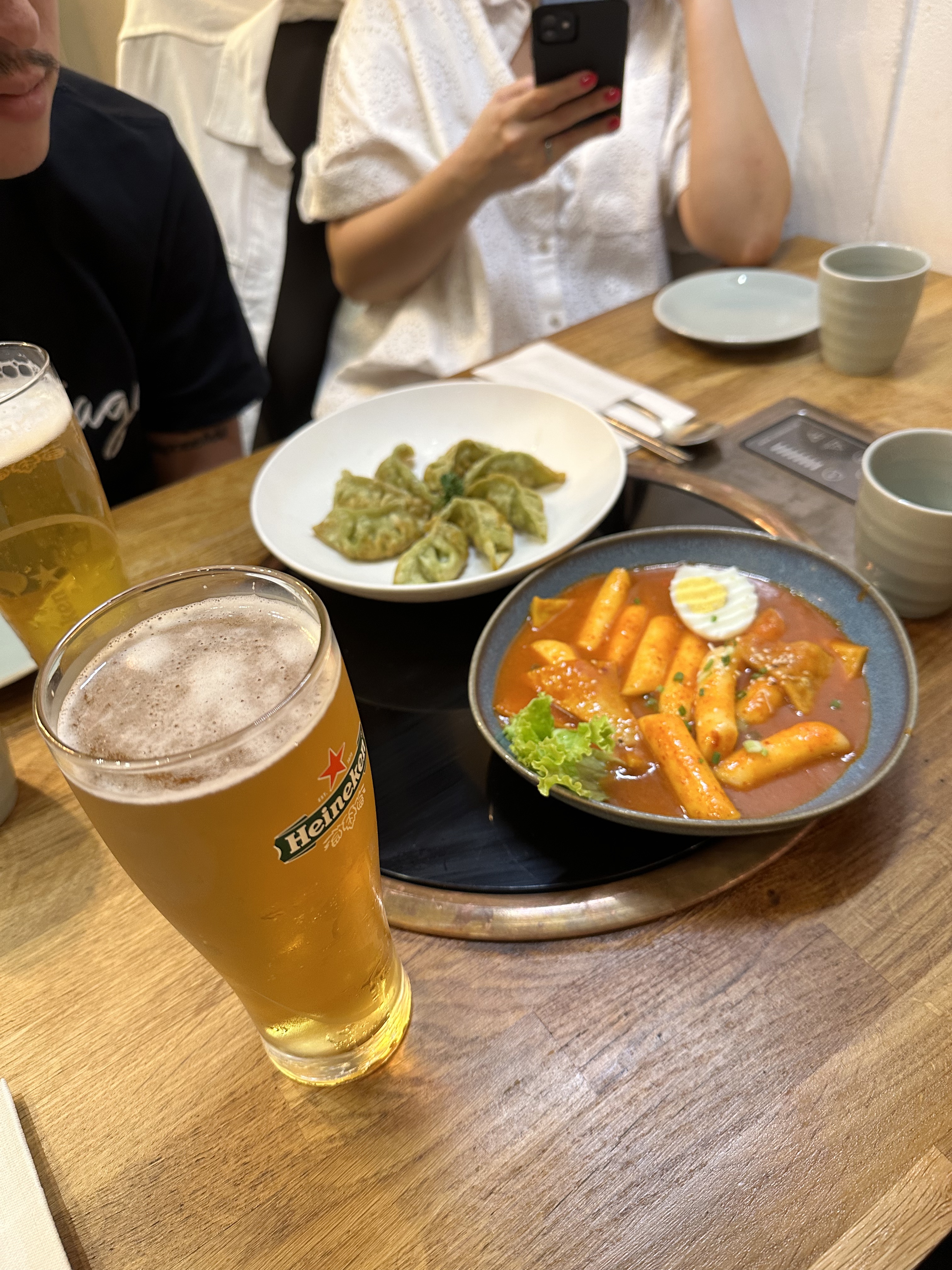 Restaurant coréen qui propose des plats individuels ou à partager (leur toekbokki est un vrai régal) ainsi qu'une carte de boissons sont ou alcool même si j'aurais bien aimé plus de détails sur les cocktails faits maison mais vous pouvez très bien demander aux serveurs. Vous avez des entrées, des barbecues, des fondues et des desserts typiquement coréens évidemment. L'ambiance est sympa assez chaleureuse (un peu bruyante mais c'est normal) et les serveurs et serveuses sont aimables et au petit soin ! Nous avons passé un bon moment, merci à toute l'équipe !