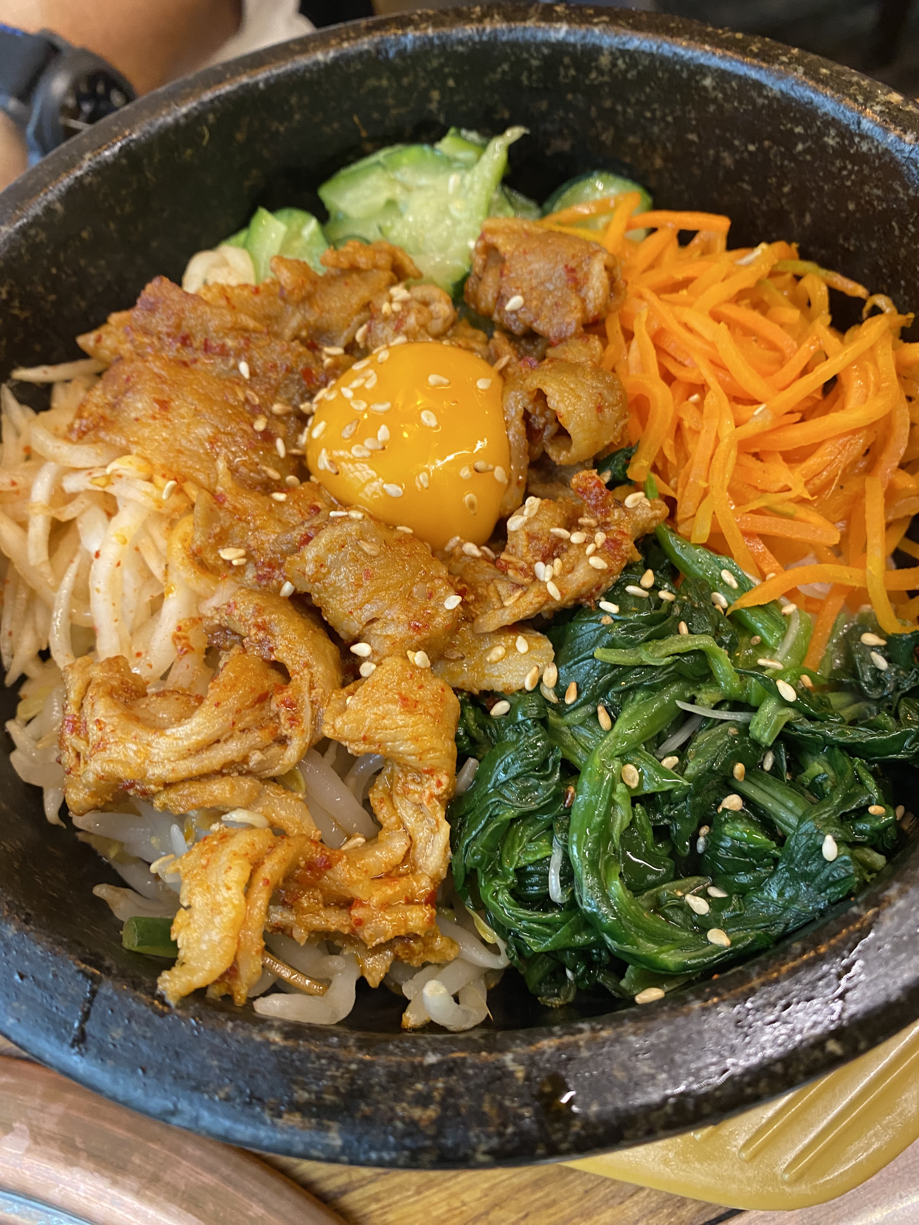 Je suis venue manger ici le midi, il y 3 jours. J'ai choisi le bulgogi au poulet. Le repas était très bon pour le prix et pas trop épicé. L'ambiance était calme.
