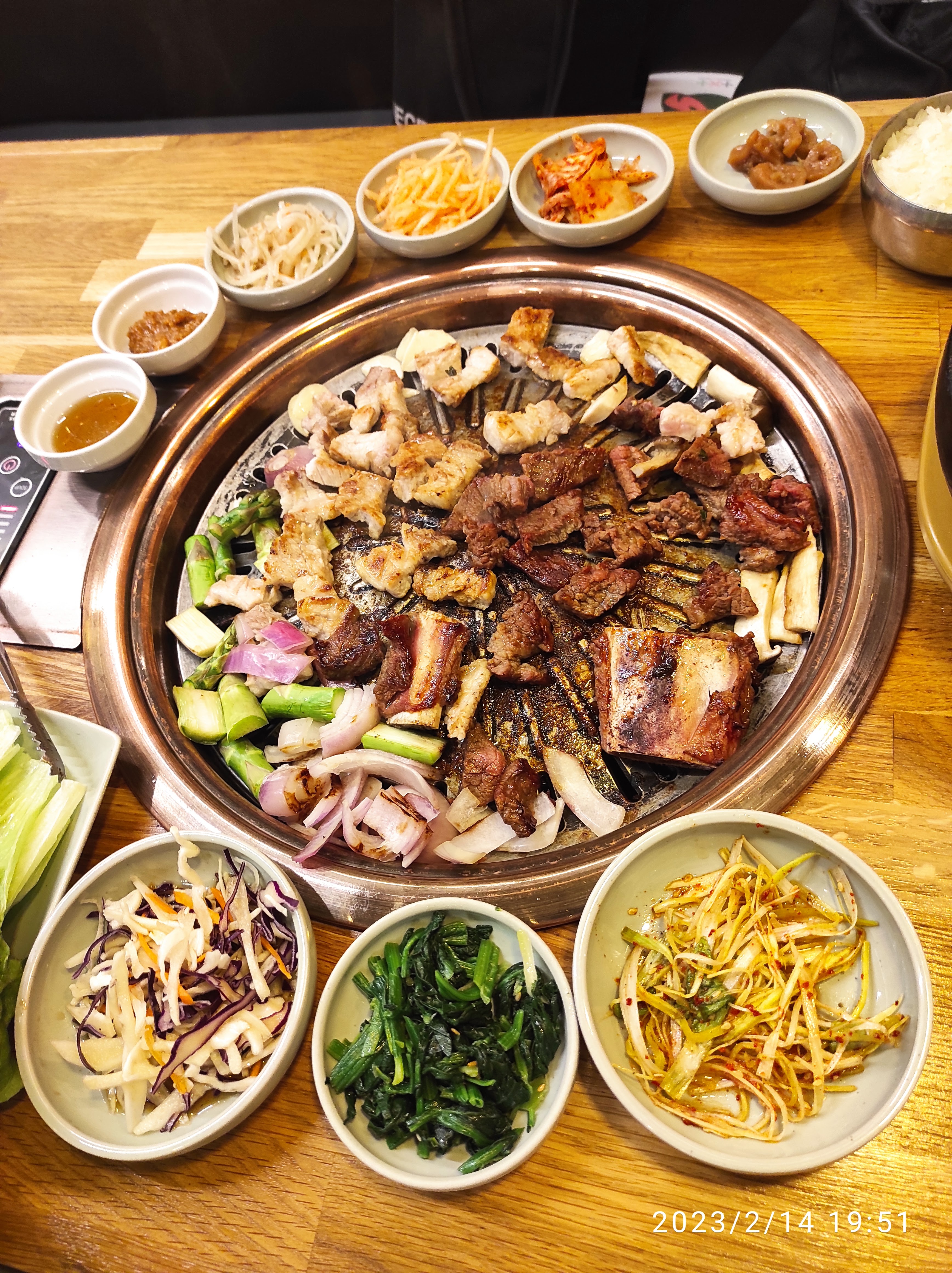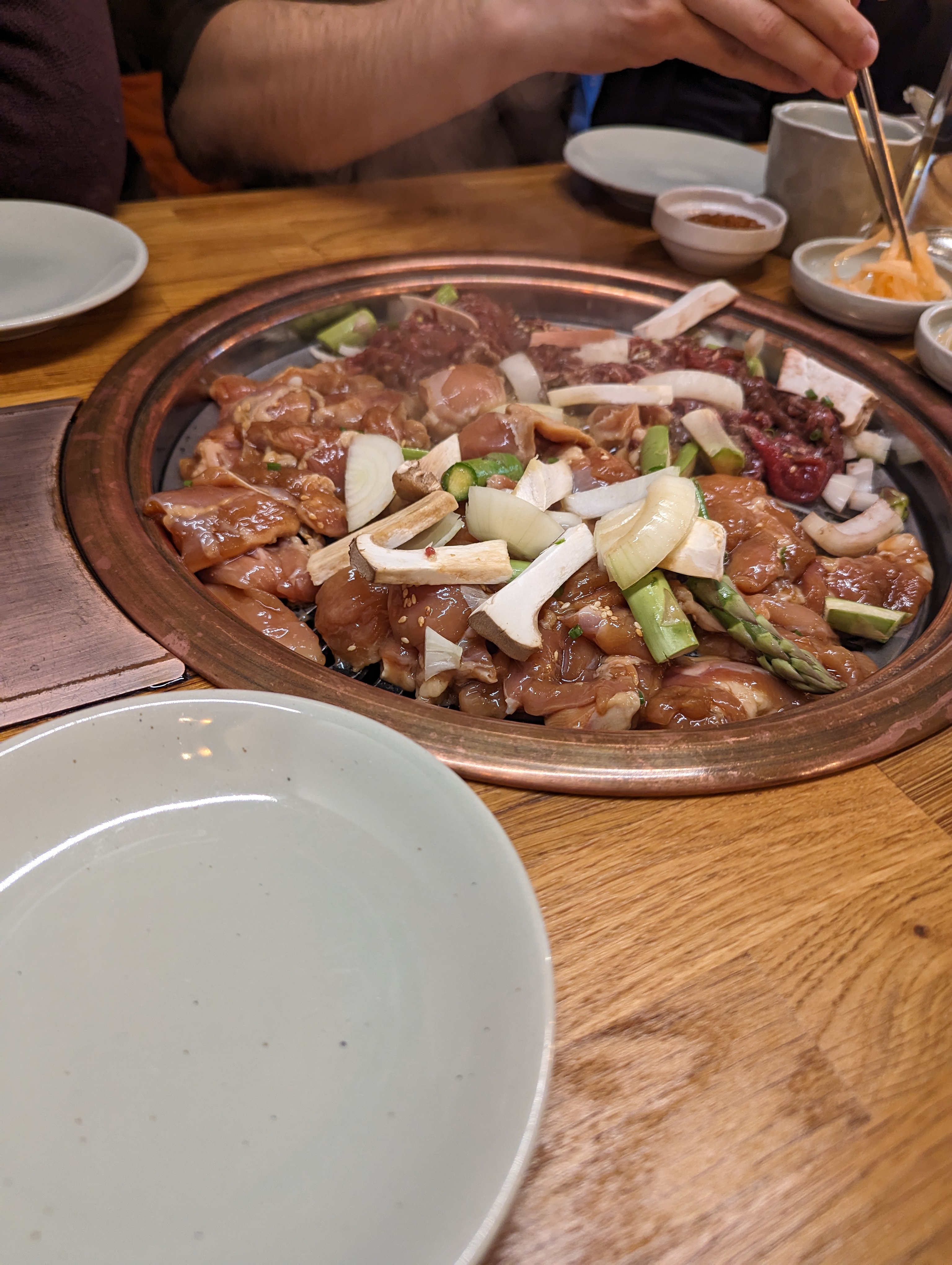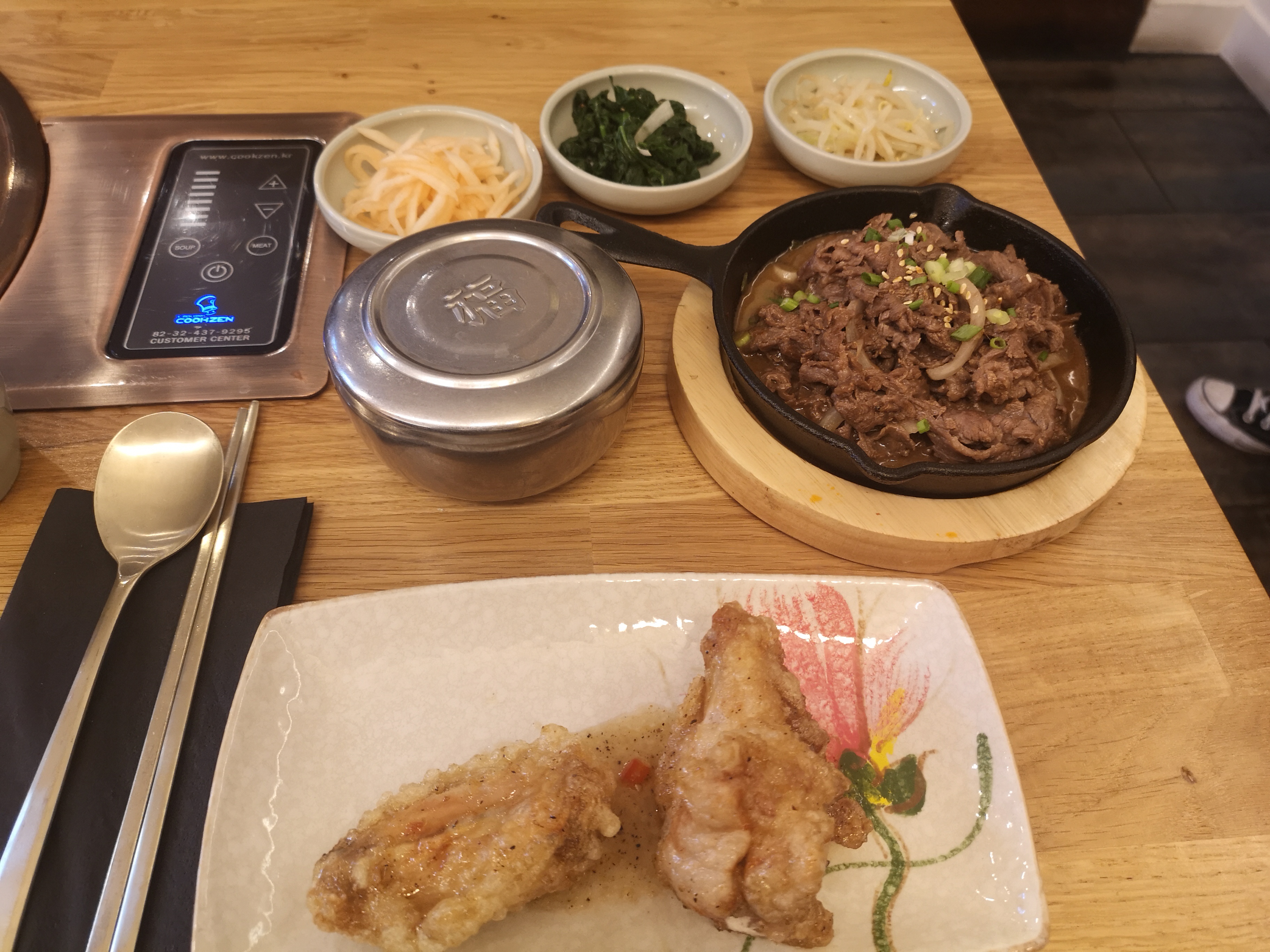 Ambiance agréable et service chaleureux. Nous avons pris le barbecue coréen avec Bulgogi et les travers de porc mariné. Le rapport qualité prix (44€) pour 2 est très moyen.