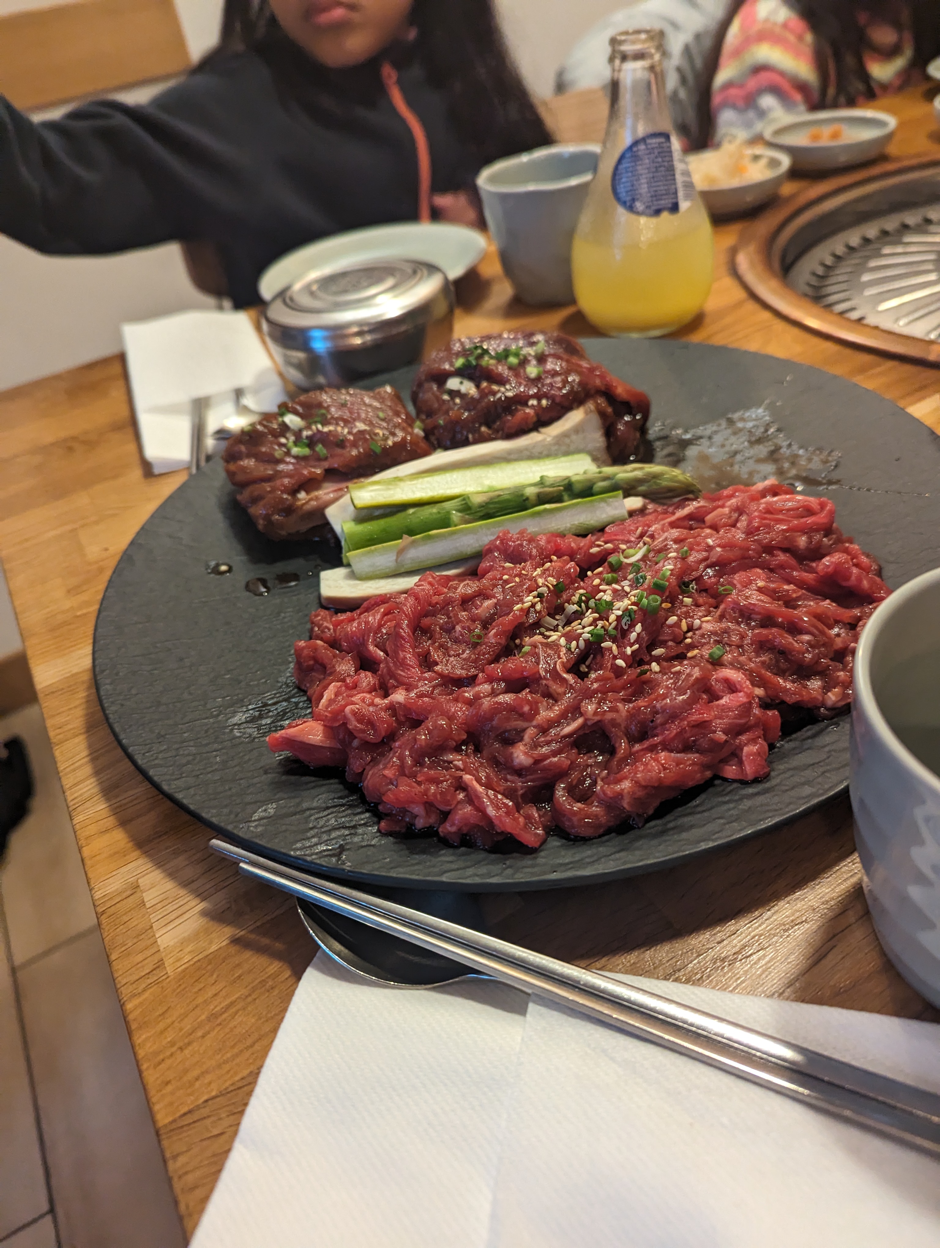 Barbecue coréen authentique! Très bien servi, une bonne ventilation donc pas trop d’odeurs en sortant. La bière en pression en excellente et les desserts sont très savoureux (nous avions prix une crêpe). Les portions de viande sont copieuses ! Merci pour l’accueil!