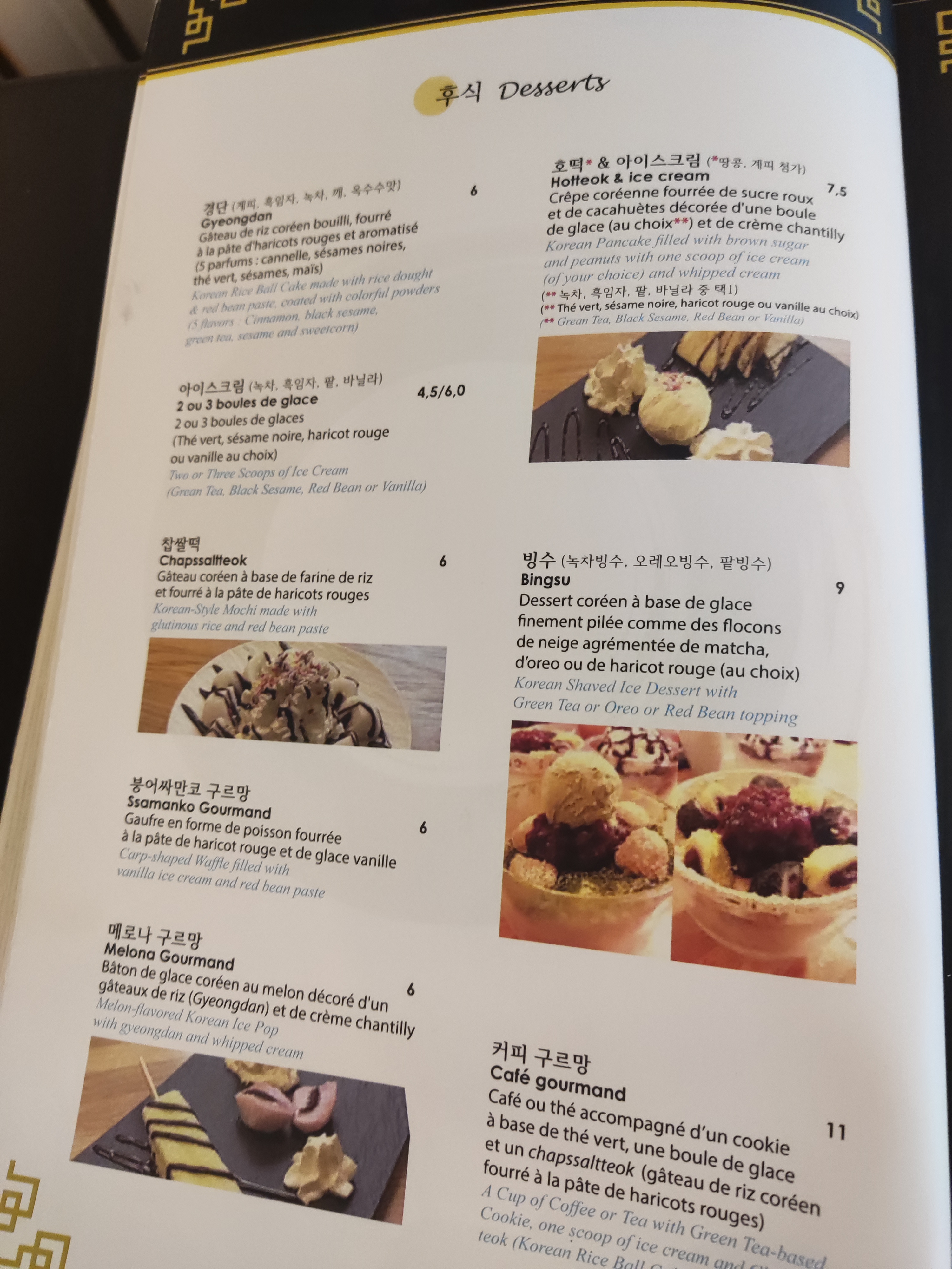 Très bon restaurant coréen ! Les plats sont délicieux (aussi bien le barbecue que le kimchi jjigae, ainsi que les desserts). J’étais très agréablement surprise car il y avait pas mal de plats d’accompagnement (banchan), parfois d’autres restaurants coréens ne sont pas très généreux pour cela….. mais là il y avait de la variété et c’était très bon ! Idem pour le barbecue, le restaurant sert le tout avec de la salade, de l’ail, des oignons, du piment, du poireau, etc… c’était très complet, comme un véritable restaurant coréen ! Le service était très sympathique, l’équipe du restaurant est dynamique et souriante !