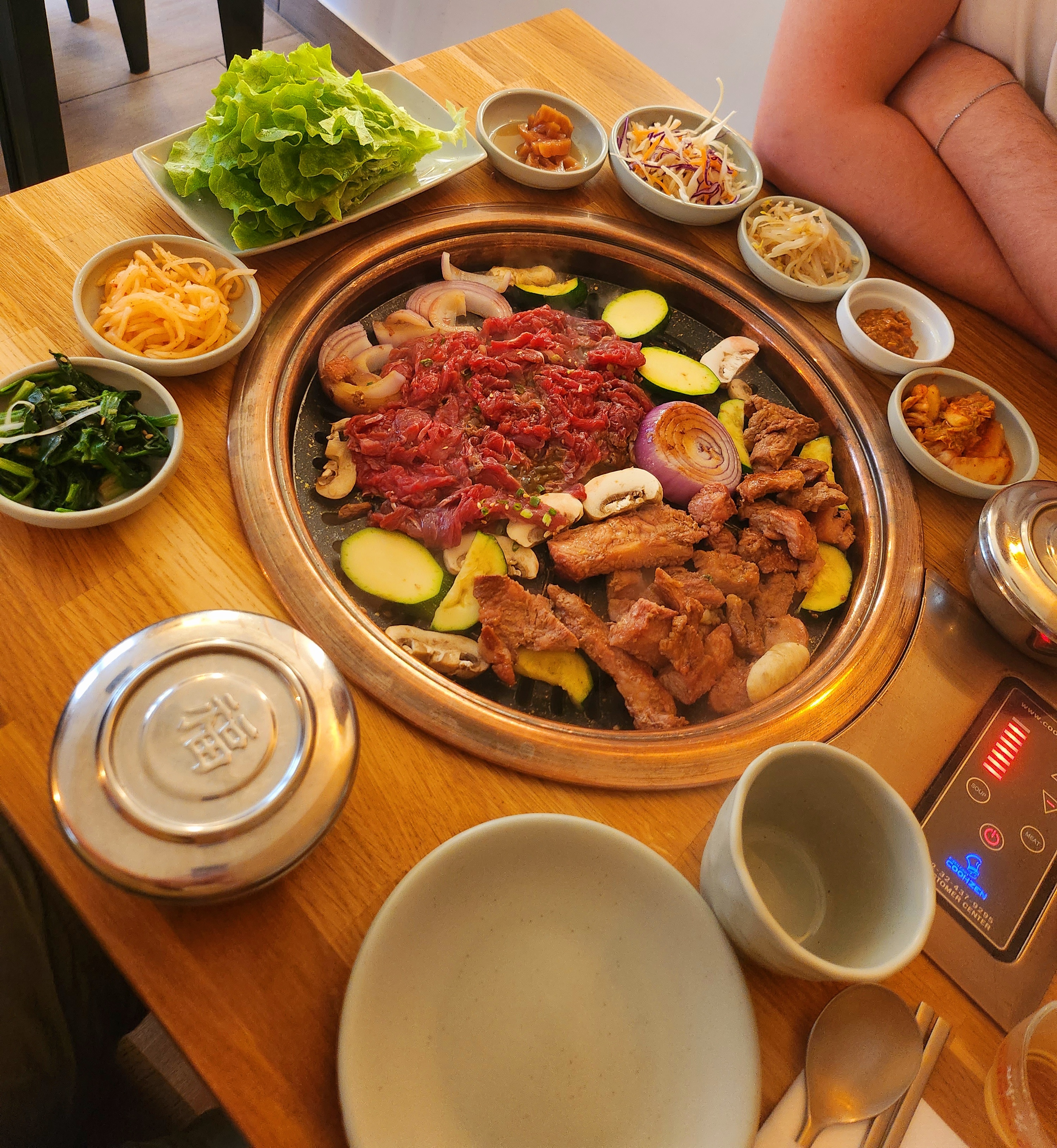 Excellent restaurant, nous avons testé le boeuf bulgogi et le samgyeopsal (poitrine de porc). On a eu l'impression d'être de retour en Corée. Merci au personnel qui était adorable nous avons passé une très bonne soirée et reviendrons vite!
