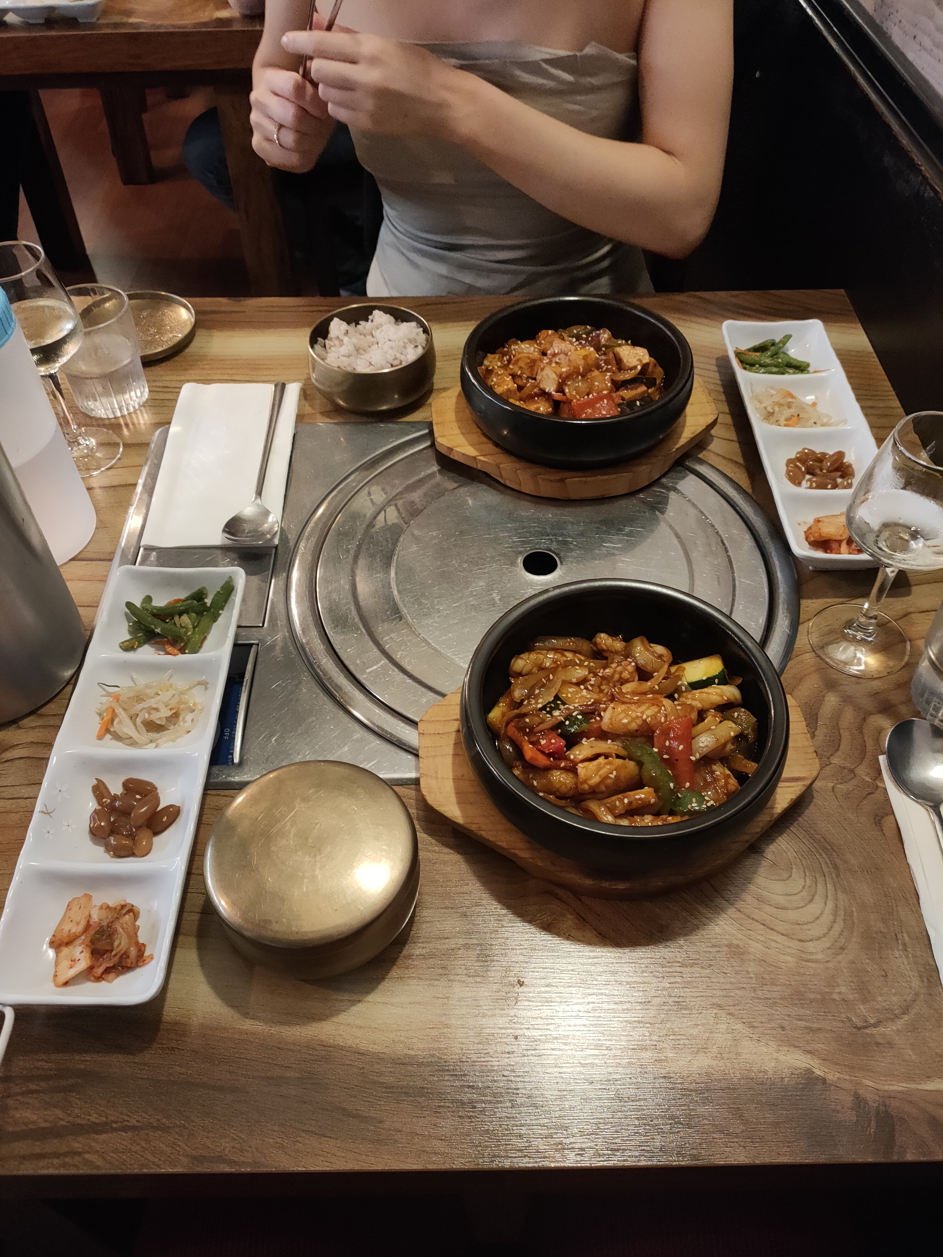 Repas entre copines au Sejong (ex-Somec). Raviolis, Japchae, Bulgoki poulet et Bulgoki bœuf. C'était délicieux, le cadre est très agréable, le service attentionné et amical. On a passé un délicieux moment.