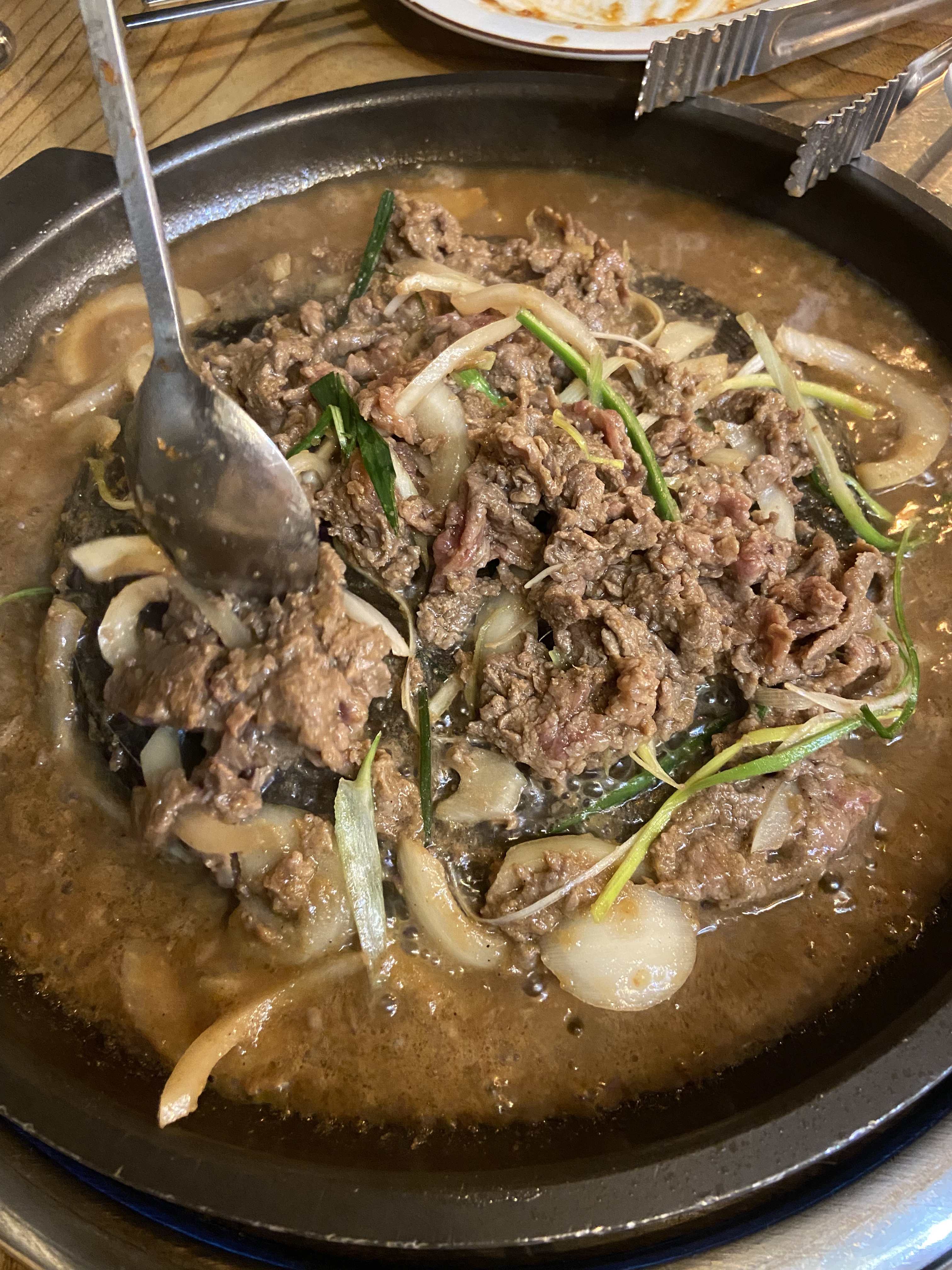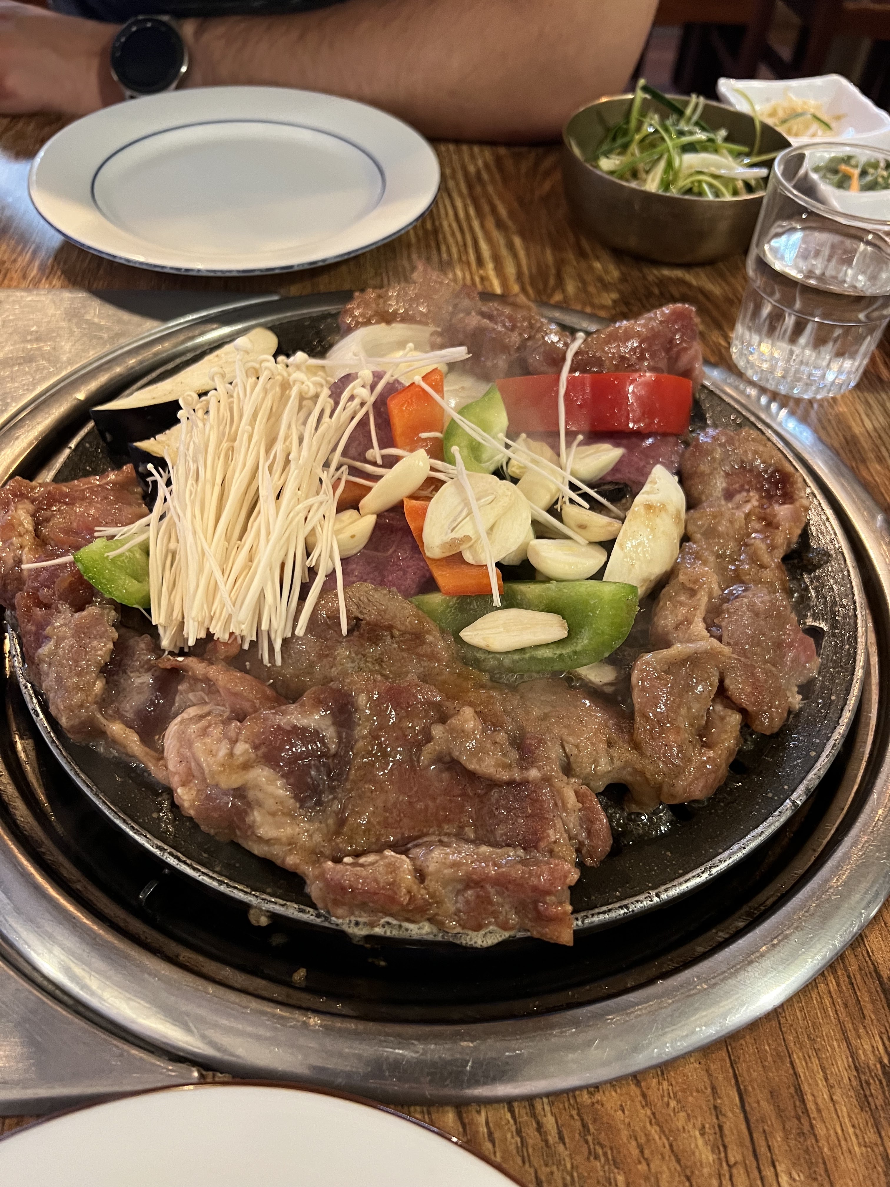Nous sommes venus en compagnie d’un bon ami, féru de cuisine coréenne depuis son voyage à Séoul. Nous voulions faire un barbecue coréen authentique et il nous a conseillé cet établissement. Nous n’avons pas du tout été déçus. Le bulgogi était excellent, la sauce était divine avec du riz. Le clou du spectacle était la belle échine de porc marinée et cuite au barbecue avec des légumes : un régal. Les portions sont copieuses et le rapport qualité / prix est très bien. Nous reviendrons pour sûr !