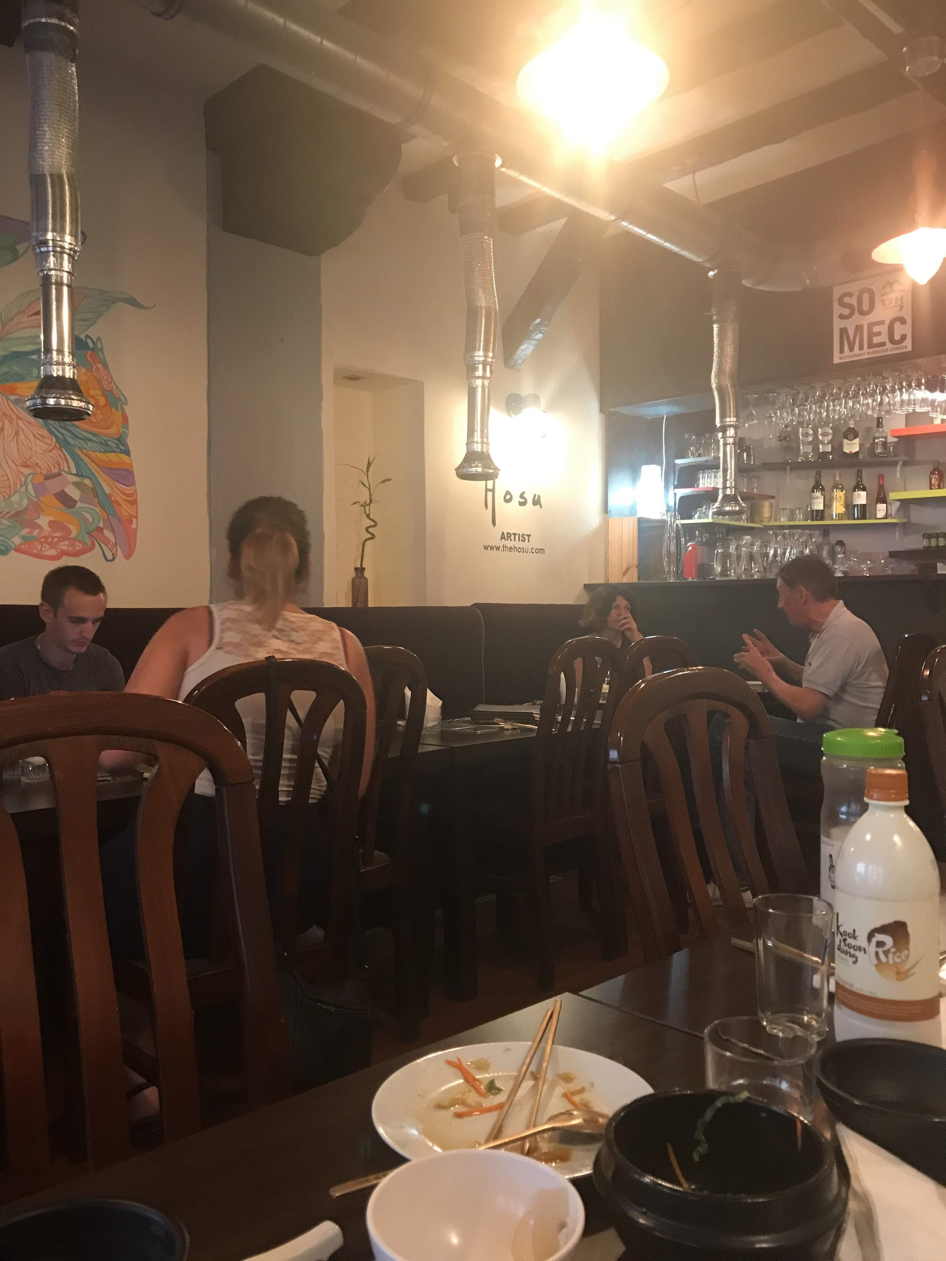 Très bonne ambiance, avec des plats vraiment très bon ! On a adoré la crêpe de Kimshi Attention pour ceux qui n'aiment pas l'épicé certains plats peuvent réserver quelques surprises, il ne faut donc pas hésiter à demander à mettre moins de picant !