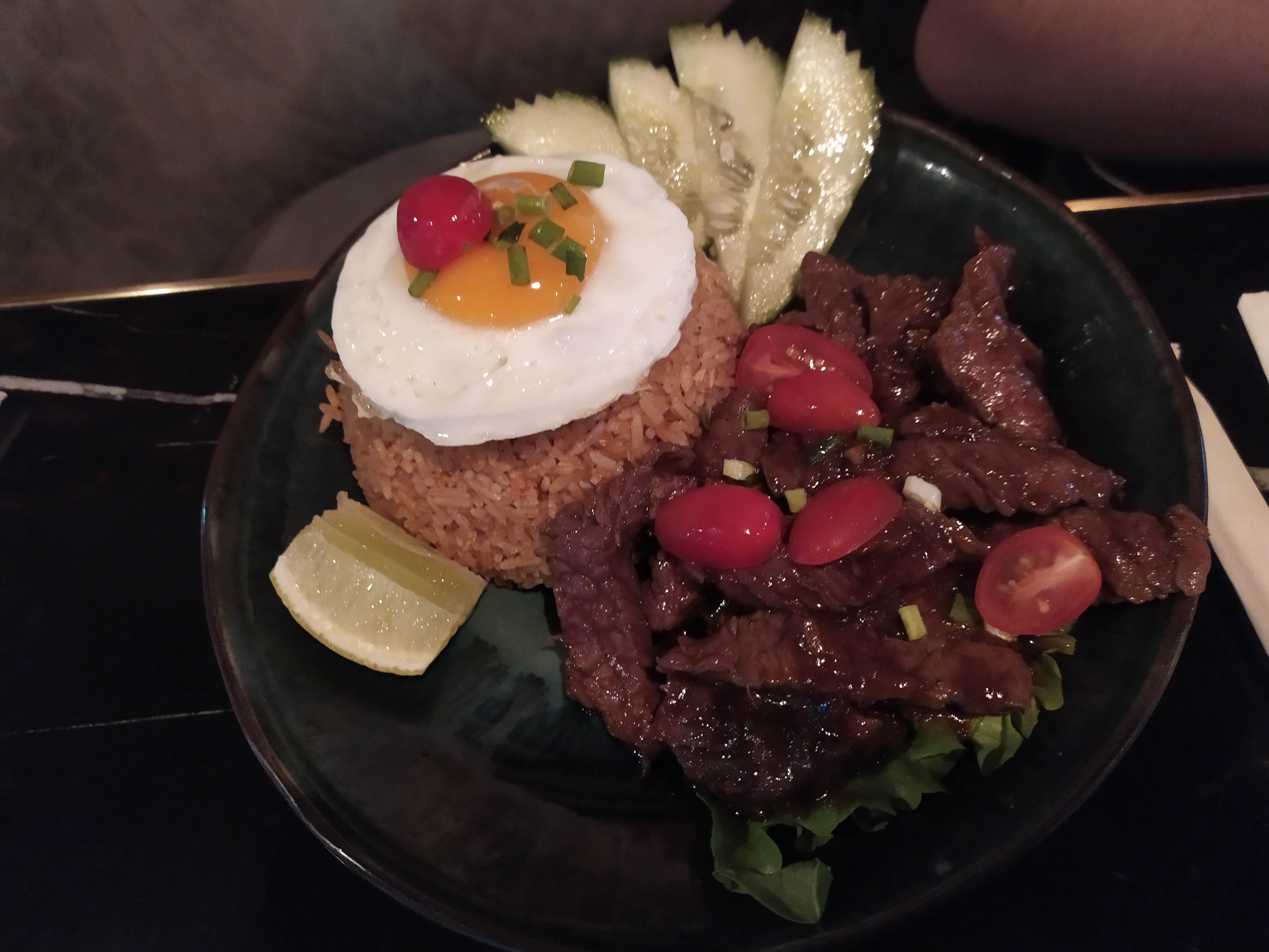Découverte de ce restaurant, via TheFork sur lequel j’ai effectuée la réservation. Endroit, calme, sympa. Personnel aimable et souriant. Nous avons goûté deux types de plat : bœuf mariné et l’échine de porc mariné (voir photo) les deux été bon, mais une préférence pour l’échine de porc qui a plus de goût.